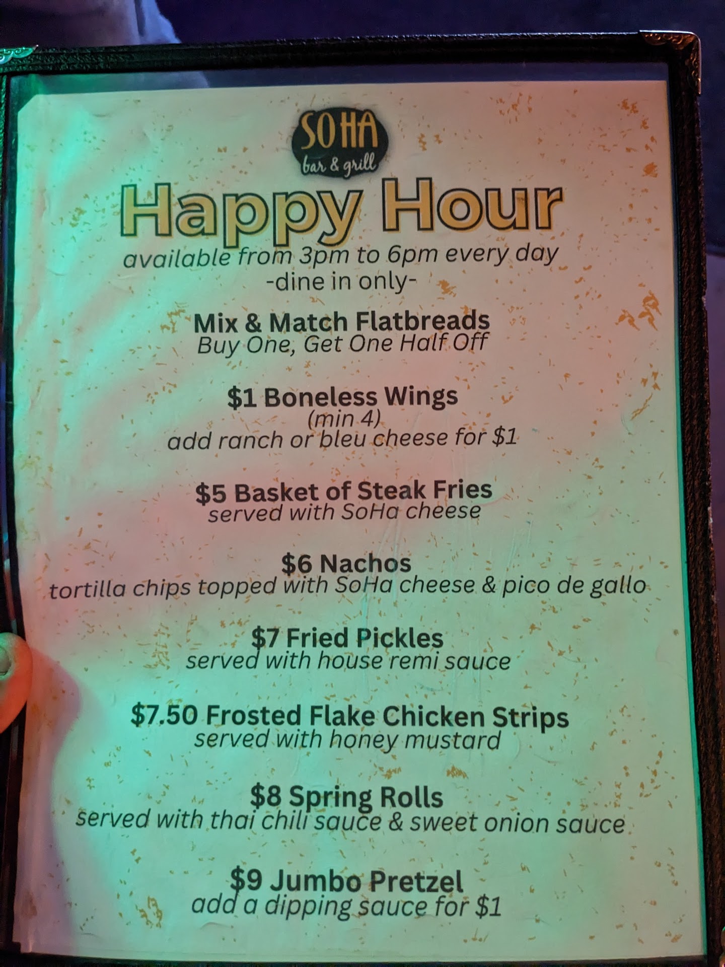 Ā Ā Ā Read moreSOHA used to be our go to place, with $5 burgers and great bartenders there wasn't much else we wanted. Then we had a kid and needed to sit at a real table and while we knew the table service wasn't particularly fast (very friendly but not super quick) the last two visits convinced us that we probably won't be back. Tonight for instance we had to wait for drinks which while normal is pretty annoying, what isn't normal is to have to ask how much longer on our food after right around 30 minutes of waiting. The initial reaction from the server was to inform us that they just got out food for a 30ish top and that the kitchen would be working on our food now. While I understand that excuse, why on earth wouldn't you tell me before I ordered or at any point the the 30 minutes I was waiting? So I asked him how much longer the wait would be and our server disappears in the back to see. I wait 5 minutes and since I hadn't seen him yet I decide to leave with the kiddo since she is getting restless and ask my wife to ask them to pack up the food togo. At the end of the day it took over 15 minutes to get us the food after we asked how much longer and while I understand that things happen a little heads up would have gone a long way. Now the server did try to make it right I guess by discounting one drink that my wife got from Tito's to their well price. To be fair though the server did forget to ring that drink it and had to confirm what it was again with my wife after a decent amount of time. Farewell SOHA it was a great ride...