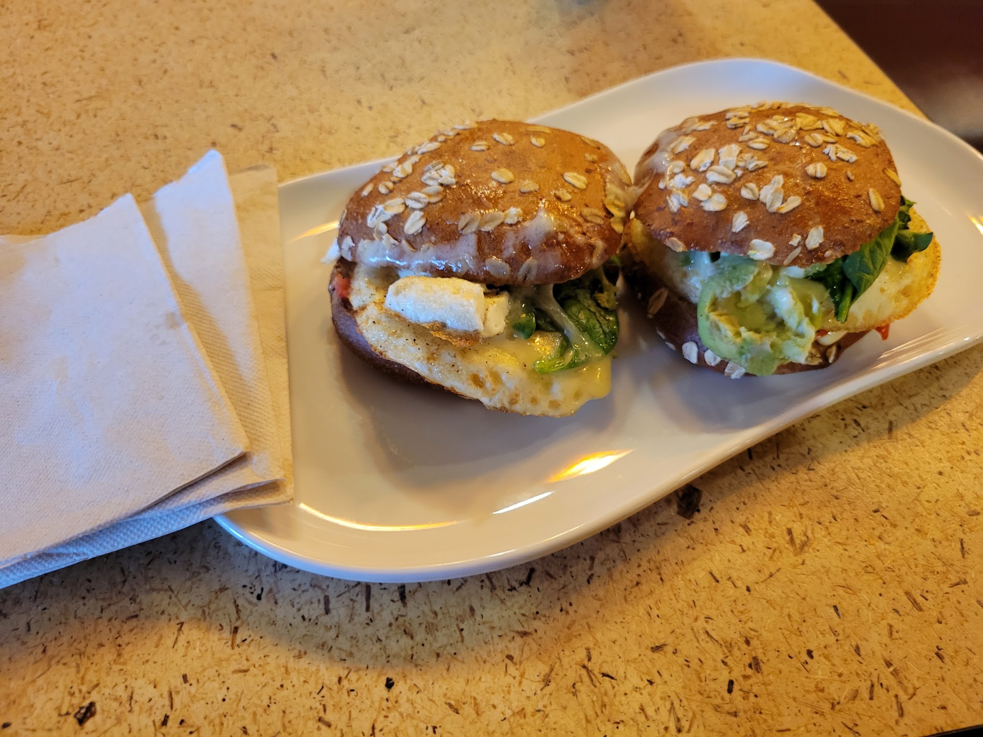 My only concern is that homeless sit around in the larger booths for many hours. Today I had a study group meeting for several hours. I arrived at 9am and when I left at 2:30pm, same people were still in the larger booths. Only having coffee and sitting. Another gentleman sitting for a long time at a front table started to leave right behind one of the lades. This made her uneasy as prior he attempted to engage in a conversation with her. She was polite but came back and sat down until he left. I stayed on the phone with her until she was in the car.