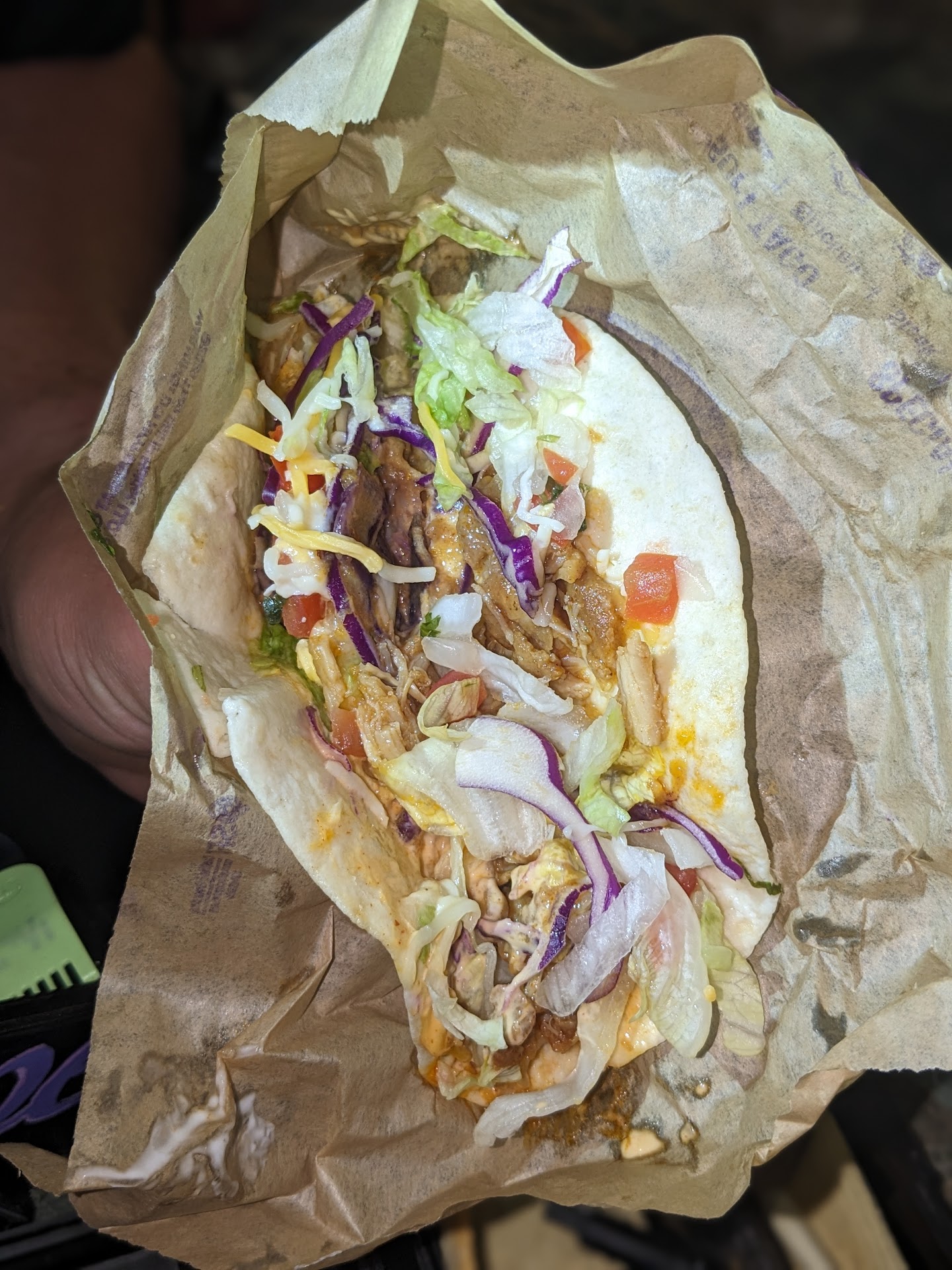 Read moreOrdered a large nacho fries, and was really looking forward to them, just for them to be reheated stale fries from earlier in the day! That’s just wrong. No wonder the food was done so fast. Workers assume you need to order at the kiosk and not address them, when you could be there for a mobile order and create an unapproachable atmosphere. The refried beans in my beef nachos looked like a big turd laid across them, but the tacos and burrito was a nice contrast. I have to give them credit for giving me 12/15 sauces I requested, but I just think if you only have old stuff from earlier in the day to give, you should taste test it yourself and determine if you still would feel good feeding it to the general public and their children. If the stick isn’t there the manager should be thorough enough to take it off the online menu temporarily and such. I have gotten stellar service during day time hours, but it seems after about 4-6pm the night crew comes and it’s not a pleasant time according to other reviews and my current experience as of today.