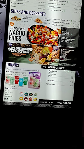 The food was extraordinarily fast, I was impressed, but I think I know why. I order off of the dollar menu, the beefy Frito borrito, about 70% of the beef and Frito was gone, as in it was less full than usual. I also get an odd concoction when getting drinks, it has several things in it. Because of this I can't tell which drink was off, but overall the drinks seemed acidic, more so than normal, I know that is an odd complaint, but that is the best way of describing it.