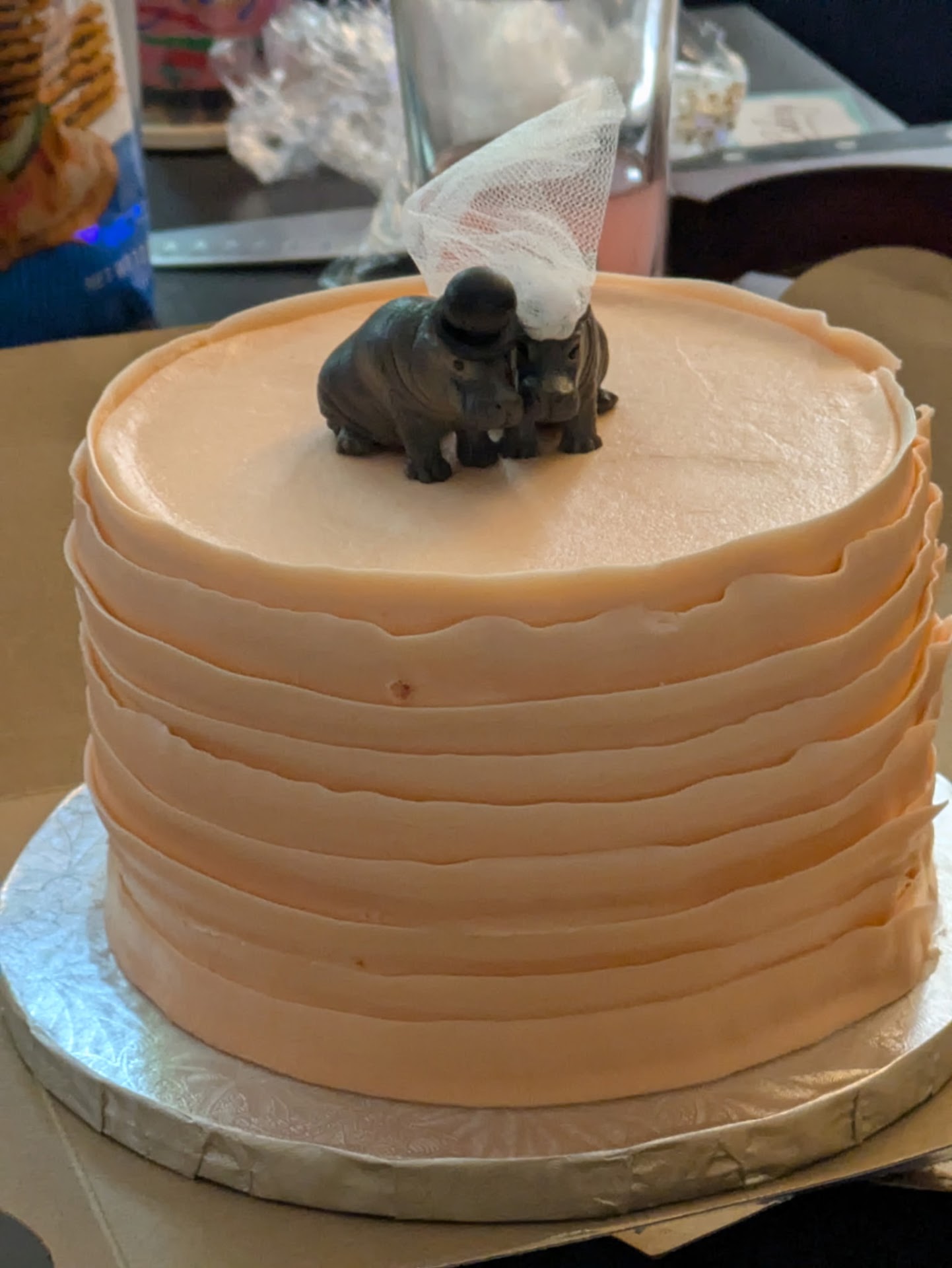 I also went to the Cakery for a surprise groom's cake at the wedding rehearsal. I showed them some inspiration pictures and gave them a figurine to use -- it turned out exactly like we wanted and the groom loved it.