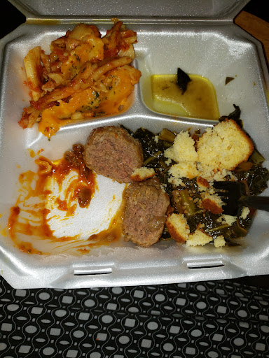 Food: IT WAS VERY DISAPPOINTING! The food lacked taste, the right temperature, as well as the right texture. The corn muffins were old, cold and hard. The rice was gummy and then some parts were hard from sitting too long. The Mac and cheese had sweet butter so it tasted like they put sugar in it. The chicken was VERY OLD and dry. The black eyed peas lacked seasoning. The cabbage lacked seasoning, the sweet potatoes had PINEAPPLES in it which made the taste different. Dessert was an option between yell cake and white icing or white cake and chocolate icing and both were old and dry.