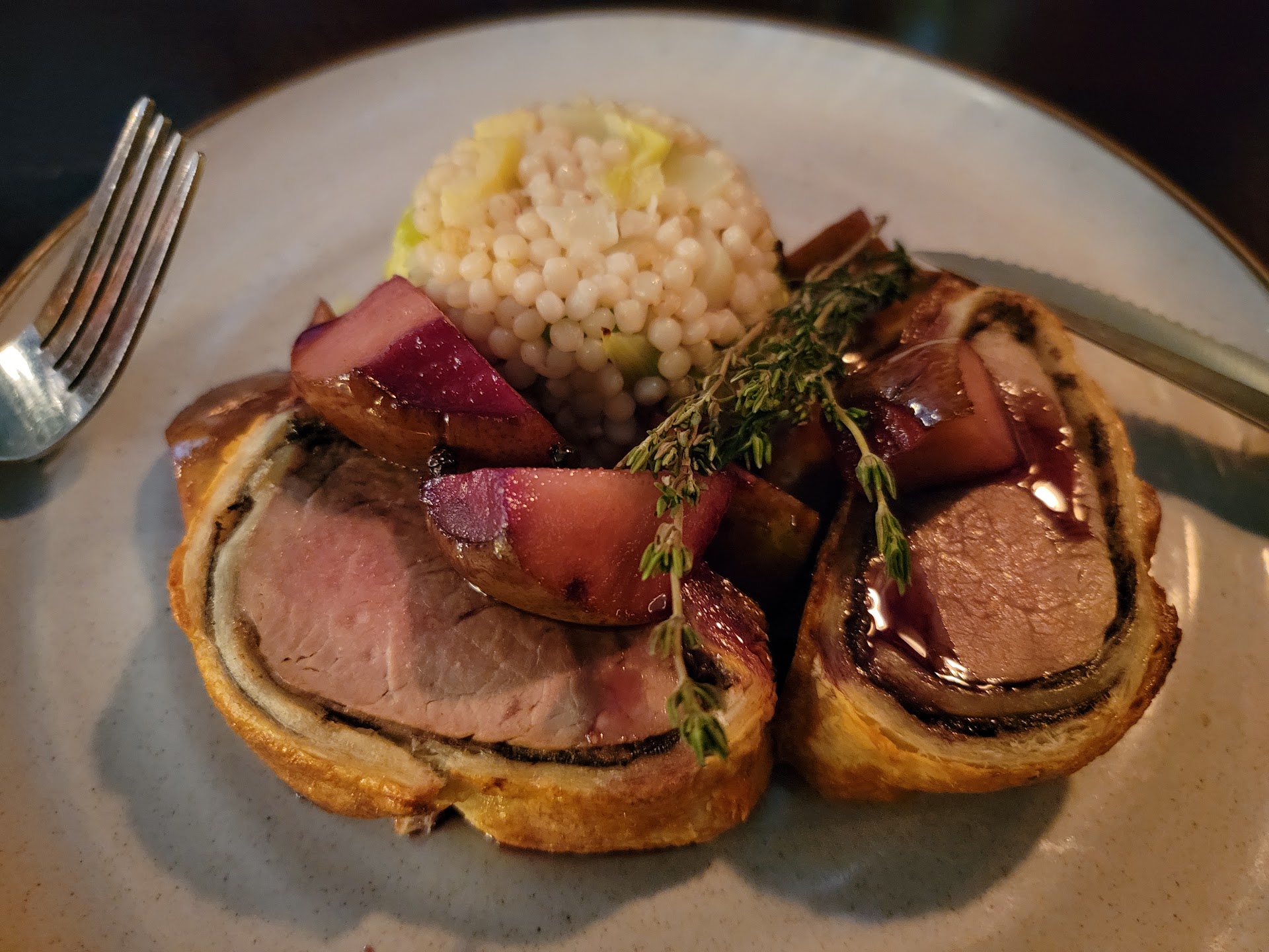 Bacon Wrapped Haggis - My husband was absolutely and completely in love with his haggis. I had never tried haggis and had no idea what to expect. But I was blown away by the distinctively unique seasoning....there was definitely some nutmeg in there. However, the mashed potatoes served with it were, again, under seasoned.
