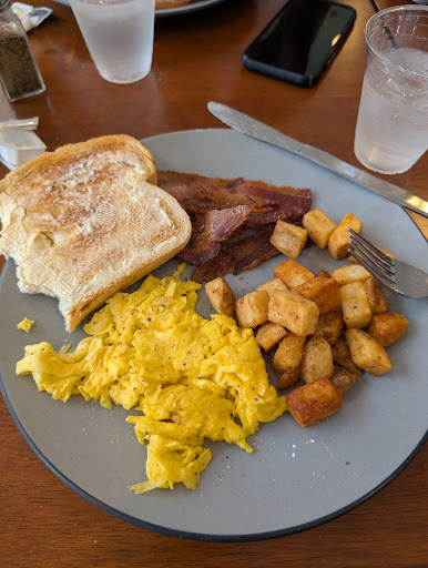 Read moreI hate to give a bad review when it's so obvious that these folks are trying to make it work while being short staffed, these days. So, I'm taking the time in line and wait time for food out of the equation. The things that downgraded my scoring for them are pretty much unforgivable. 1) when you walk into a breakfast/brunch cafe and both self serve coffee urns are empty, that's a big deal. These are things that should be checked on periodically regardless of how busy you are. 2) food was cold and the poached eggs on my Benedict were basically hard boiled. After waiting as long as we did for the food (even with people who were behind us in line getting their food first), there is absolutely no reason anything should have been cold. Alas, my Benedict and my daughter's waffle were just that. And, I can honestly say, this was the first time in my life I've gotten over cooked poached eggs (they're usually underdone, if anything) and 3) no one ever came to ask us if everything was ok - basic service protocol. So yes, it was extremely busy because the Cardinals had home games this weekend and the hotels were full. However, as I said - these are 3 cardinal sins, as far as I'm concerned. Had my husband not been served the (apparently) well cooked and hot meal, my score would...