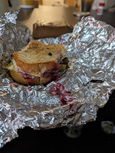 My sausage breakfast sandwich was not that great. The bread was not toasted, so with it being wrapped up to go I got a soggy sandwich. I definitely dont like when a sandwich is supposed to be toasted and it still has the texture of bread. Even worse is soggy bread. At that, I paid $10 for a sandwich that was mostly bread. The bread is too big for the small amount of meat so you'll get a lot of leftover bread with this thing. The sauce was nasty. I asked for the sauce on the side, but it was still on my sandwich.The spice over powered the rest of the taste of the sandwich. There was barely any jelly on it to balance it out.