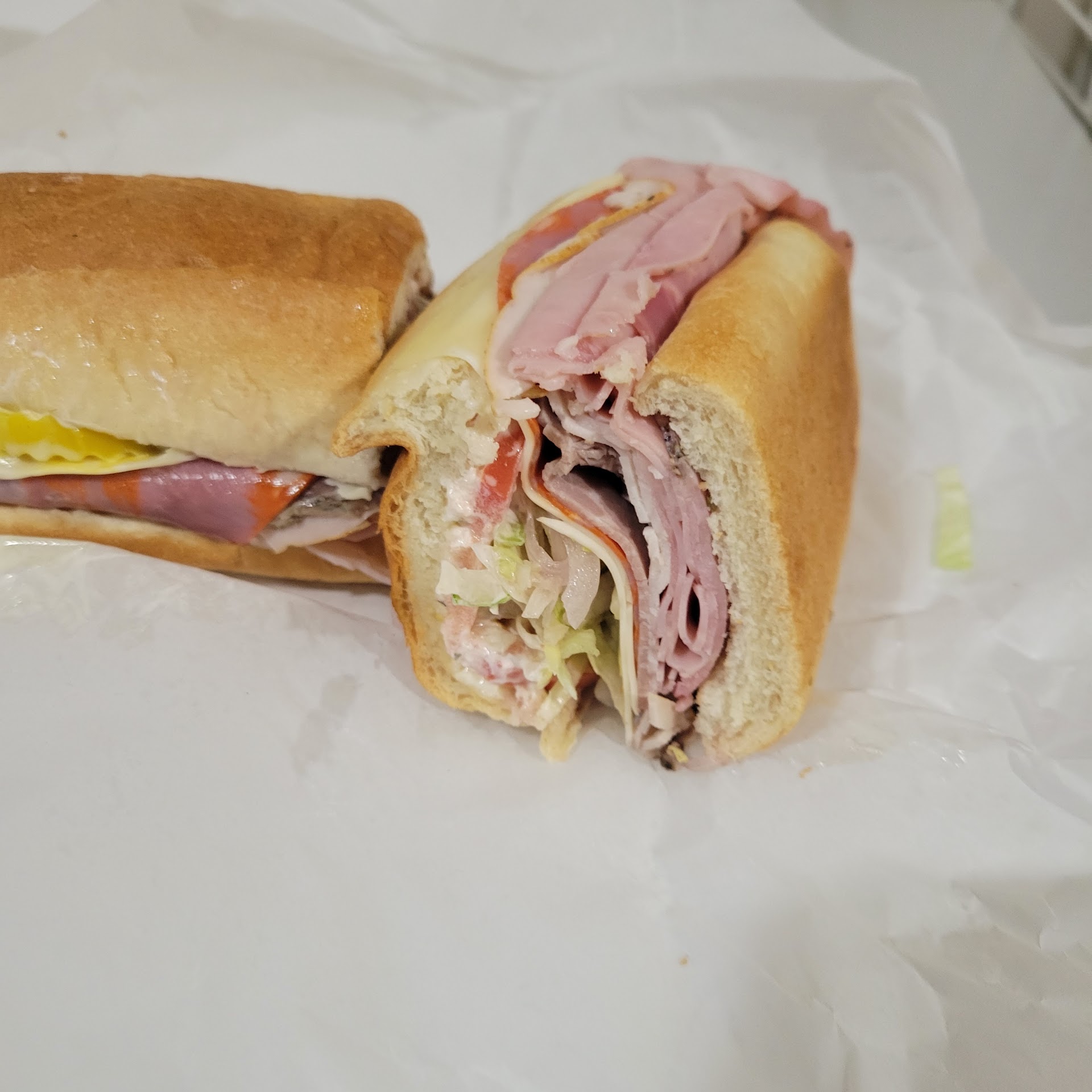 Read moreHello everyone. On February 25, 2022 I was in the mood for a good sub while shopping at the Walmart in Kingsland and no!!! not a Subway sub but something above. I saw Larry's Giant Subs in the same complex as Walmart so I thought I'd give them a try. Before I continue a bit about me. I am from New York and Northern New Jersey so when I saw in the window of Larry's New York style subs my reaction was "Yeah Right""?????? I'm also a Chef at two major high volume venue's near Kingsland so I know food, value, and quality. As soon as I went inside it smelled like a Sub Shop. The attendant was extremely helpful. He explained the menu to me, so here is my order folks! I ordered a 12 inch sub and an 8 inch sub with the following items. Ham, turkey, roast beef, peppered ham and capicola. Banana peppers, swiss cheese, lettuce, tomato, mayo and oregano. The bill came to $22.00. When I arrived home look at the pictures I posted and see what I was given. Less than a 1/4 inch of meat, and barely any cheese. I expected both sandwiches to be heavy considering that I ordered 6 meats!