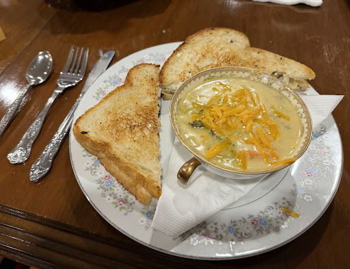This place is a must-see if you're visting St Marys. The atmosphere is just amazing. The food, delicious. The staff was super friendly. My boyfriend and I enjoyed walking around the store to look at all the nick-nacks and antiques. They have ceramics and art from local artists too. They had a whole cabinet filled with miniature furniture đ Their menu is sorta small but they do change some of their menu for variety. Their chicken salad sandwich which is part of their main menu was 10/10. My boyfriend got a cuban sandwich, part of their rotating menu, perfectly toasted and delicious. Their coffee is also really good and they have Italian sodas too. I really can't get over how cozy the whole place is, the vibes...