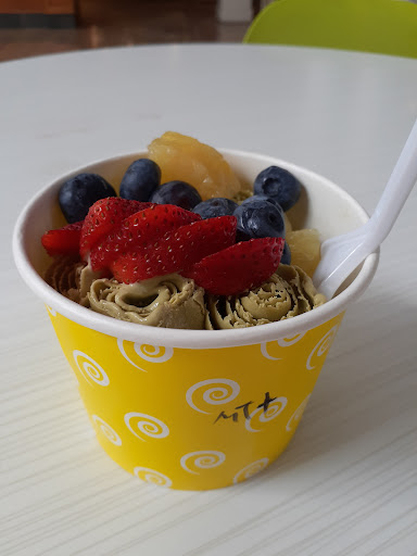 This place was delicious! We went to the mall exclusively for this based on WOM from someone else. It took a little while to make so if you're a few people back in line, I could see some aggravation and impatience with the delay, but I do think it'd be worth it! We were the only 2 there so didn't take long, and a second employee showed up as we were leaving. There was a slight Language Barrier with my wife's questions, but overall we settled on a couple of menu items and were very pleased (Lemon, and Strawberry, I...