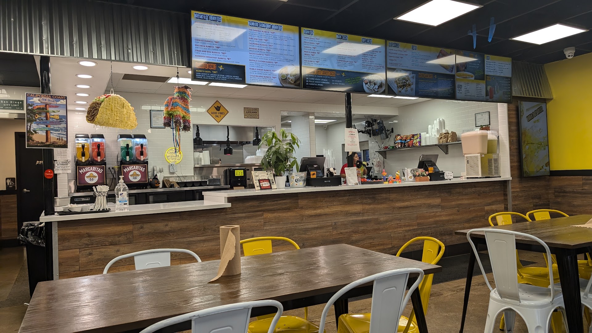 The decor is, in keeping with the Mexican theme, bright and colorful, with yellow being the primary color. It's not overly decorate wall-to-wall television screens.