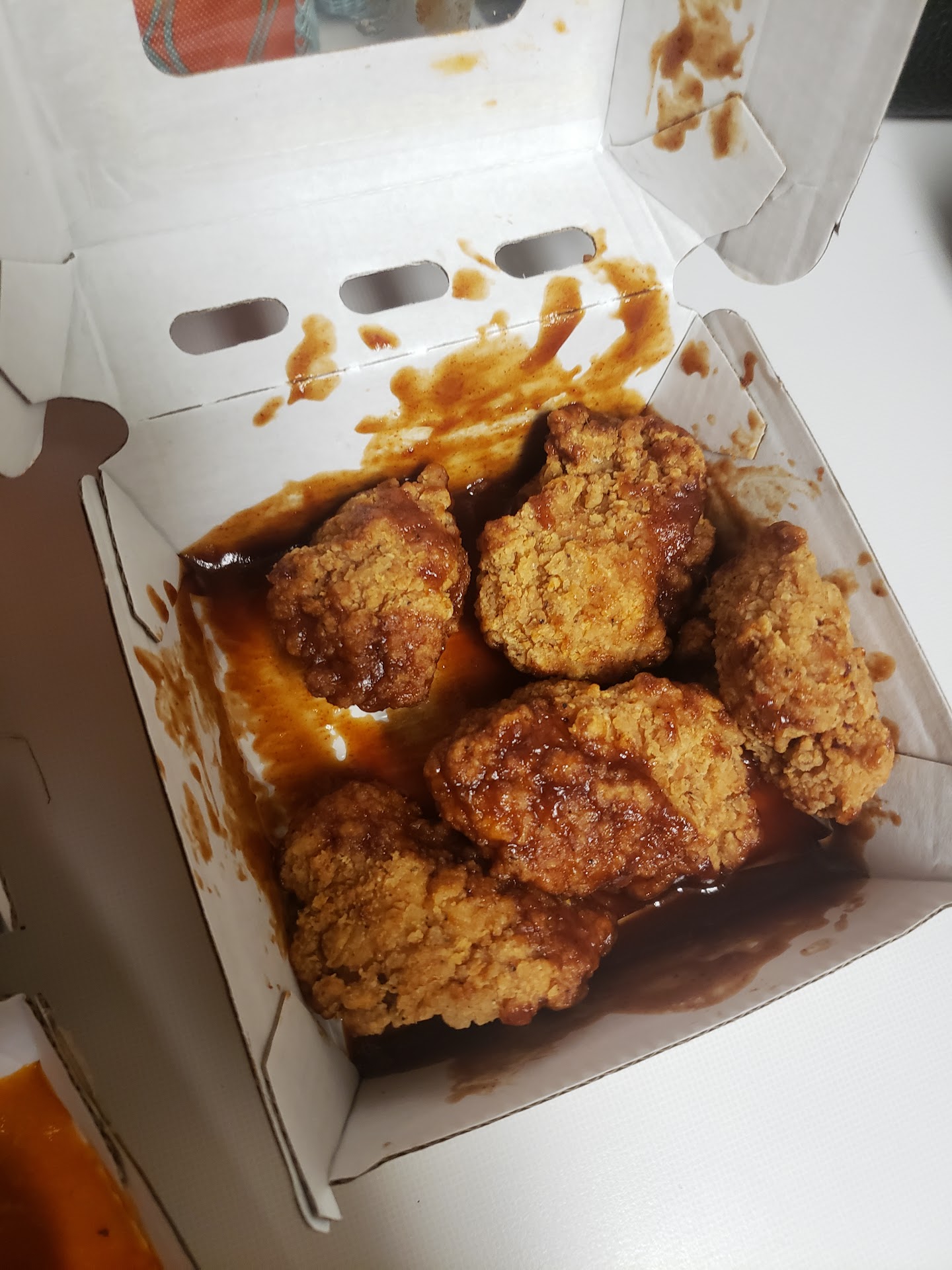 Finally, someone comes out and puts two bags in the warmer and just said "be back in a minute". She then comes back out no less than 5 minutes later and brings bag of food for the girl who was sitting down and waiting when I walked in. THEN, she starts asking the three people who were standing there. What makes me mad is that she didn't ask our names when she brought out the two other bags, even though she Cleary was waiting on other food. So, my food as well as the other guys was sitting in the warmer for 5 minutes minimum even though we were sitting right there. I had cheese curds, which didn't taste great after sitting, and you could visibly tell the wings and quesadilla were as fresh as they could have been.
