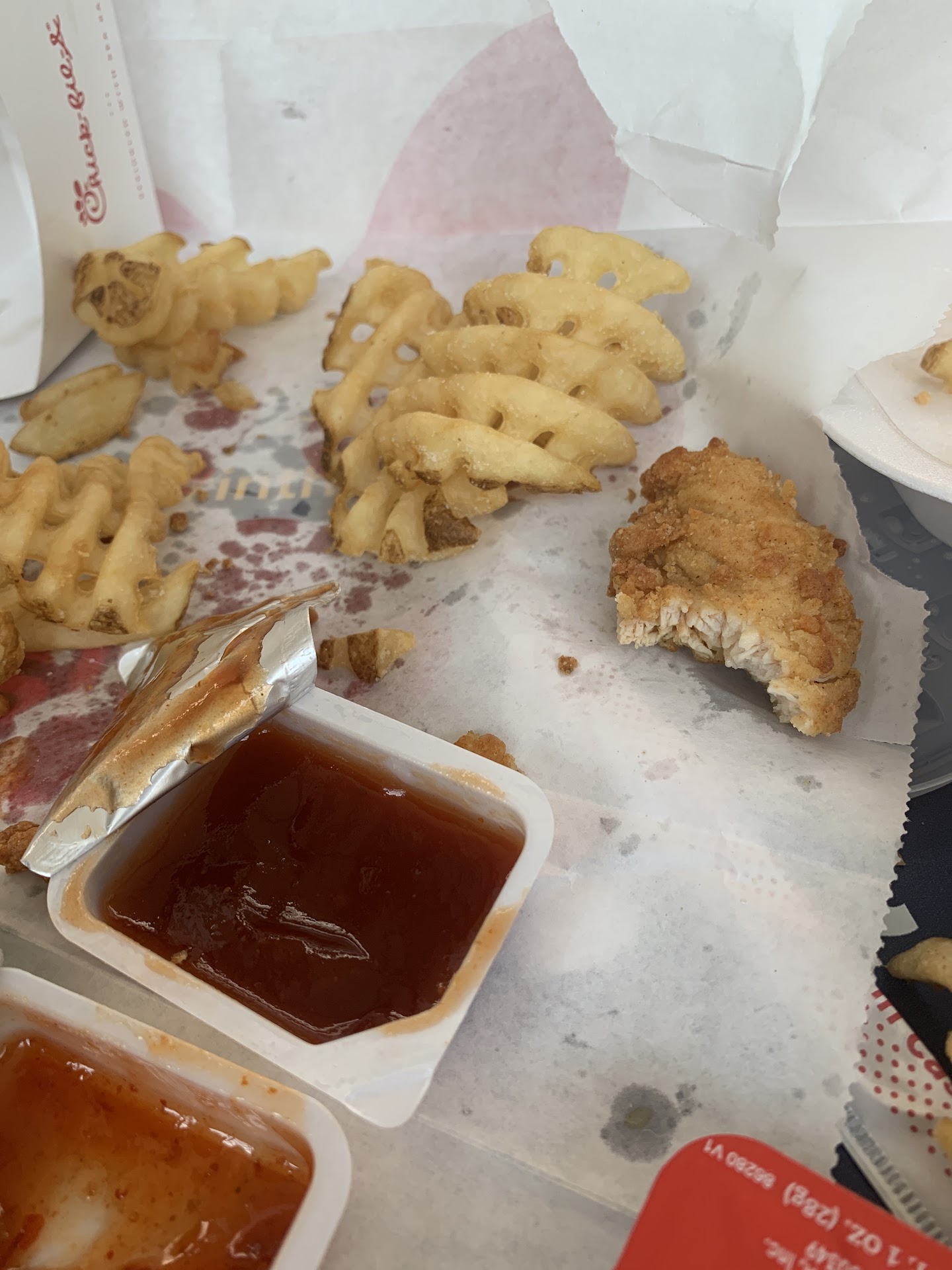 Read moreMy husband and I love Chick-fil-A like most people, but this is consistently the worst one we’ve ever been to. I order a chicken wrap on the way to friends house not too long ago and when I got there I unrolled it to find absolutely no chicken in it. Only lettuce and cheese? I don’t even know how that happened. Had it not been so late at night I would’ve gladly gone back to show them and get our money back. In addition to this their fries taste very weird here. They are extremely dry and no salt. Chicken is also weirdly dry and cold. I much prefer the Chick-fil-A near Costco or the one in front...