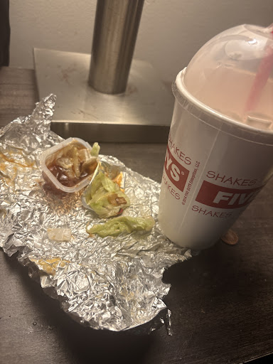 Ā Ā Ā Read moreWhile running errands my wife and I dropped into Five Guys for a burger and fries. The place was very clean and the staff was very friendly and helpful. My wife got a small cheeseburger while I opted for a big bacon cheeseburger, with a small order of fries for us to share. I especially appreciate being able to watch our burgers being prepared thru every step. Our burgers were cooked perfectly, and were juicy and delicious. Sorry for the picture. I was so hungry I couldn't wait to start. My wife scarfed hers down completely before I could get a pic š I really like the way when you order fries, they dump another scoop in the bag on top of your order so you can grab a few out of the bag on your way home. They were both outstanding burgers. Juicy, delicious and prepared perfectly. Great job, Five Guys! We'll see you...