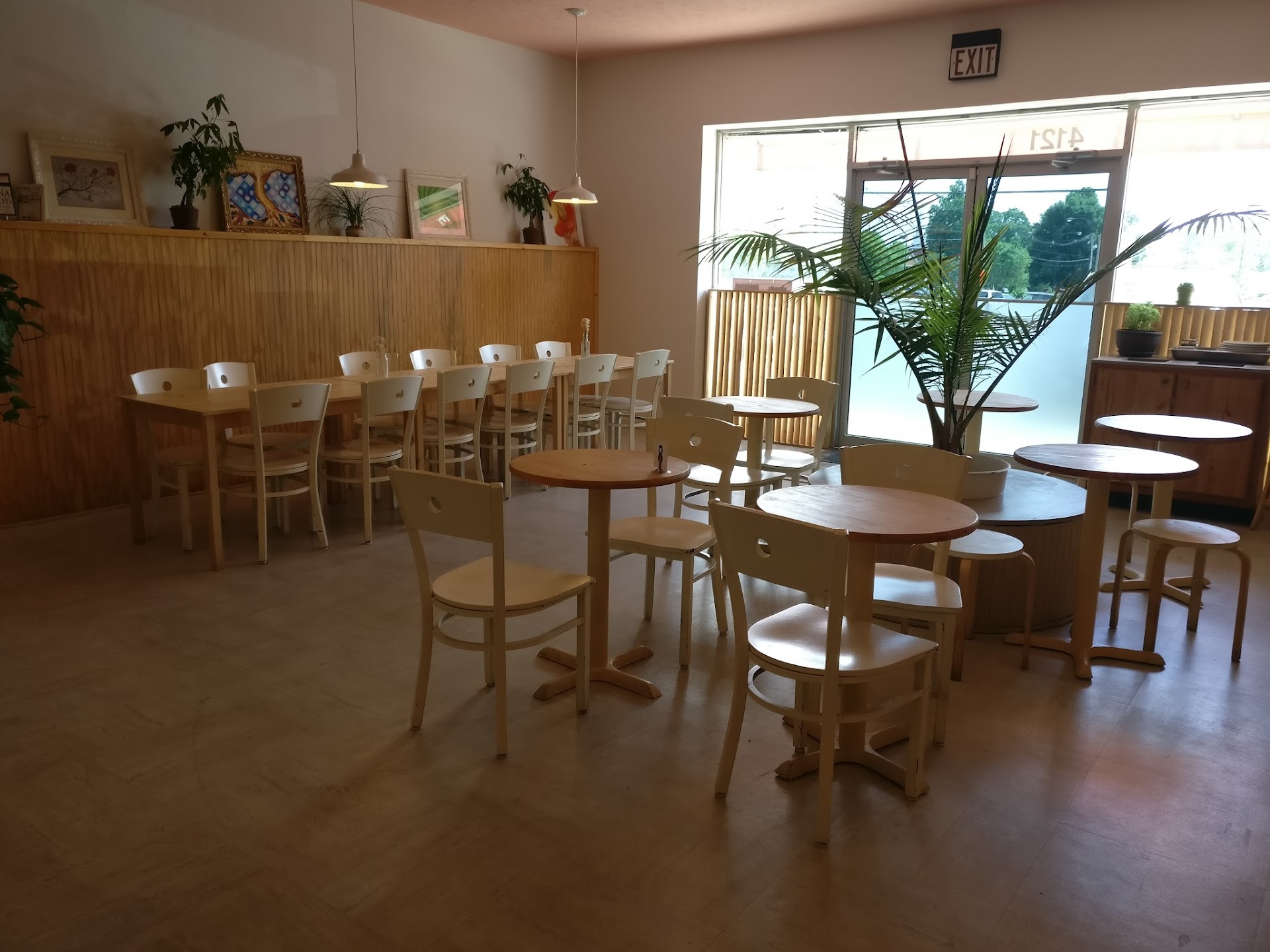 Food: It is a 100% vegan restaurant and has numerous options in terms of coffee, tea, smoothies, salad bowls, sandwiches and some Mediterranean stuff like falafel. We went for Banh Mi with a side of French Toast Bread Pudding and Falafels with a side of Scrambled Tofu. Banh Mi was amazing. The mixture of monkey head and enoki mushrooms with soy protein came across as great and the veggies complemented well. The bread was nice. French Toast Bread Pudding tasted great. Falafels on a whole wheat flatbread were great. What I loved about the whole dish was the proportion of filling to the size of flatbread which ensured no spill and a clean eating experience. Very well thought. However, the flop of the show was Scrambled Tofu which had good spices but was totally missing out on acidity. I would give it a skip the next time. For desserts, we went for Carrot Cake and Peach Ginger Almond Cake. We loved them both. Carrot Cake was a little drier than normal which could be improved. However, in terms of taste, both of them were great. Besides cooked food they also sell items like Red Tea, Kentucky locally brewed Kombucha and Cashew Cheese Sauce.