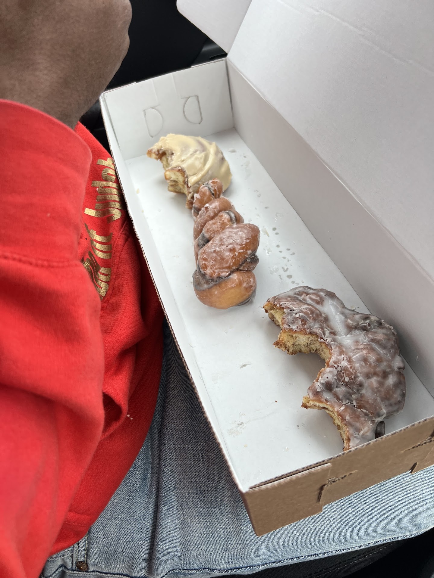 The đ© : Iâm a Heitzmanâs girlâŠI grew up having my uncle show up with them and a gallon of milkâwhenever he felt like it, so I feel like my standards are pretty high. (Classic Louisville bakery who have been here for decadesâand undoubtedly the best donuts in the city!!) but I digress, as per usual. The donuts are $2 apiece, so Iâm layinâ the boom down on the review, and not âsugarcoatingâ it. THEY ARE GOOD!! REALLLY GOOD!! They are nice and big, so they didnât take any shortcuts on size! I DID notice one thing that Iâll have to get used to, which is the icing being a little thick. Iâm under the impression that most places put the icing on the donuts at a time when it wonât stay super thick. Jeffâs donuts wait until the donut is not warm to put the icing on there, which shockingly to me⊠Iâm good with! They are all around delicious donuts, and surprisingly I even liked the ones with apples in the center!!! YUM đ€€!!!! Donât walk- RUN to Jeffâs!!! *DO NOT expect a lot of pomp and circumstance when you go into Jeffâs. The walls are bare, no menu sans the one on the counter. But I noticed a young man cleaning the outside of their fridge/proofer? AKA, giant silver machine when I was sitting in the car waiting. Iâll take that over someone hanging pics and throwing a party when I walk in any day!! Keep up the cleanliness, Jeffâs!! Yas đđŒ!!! *please refer to pics for description *THERE MAY OR MAY NOT BE A FACE IN MY ORANGE DONUT⊠THAT IS...
