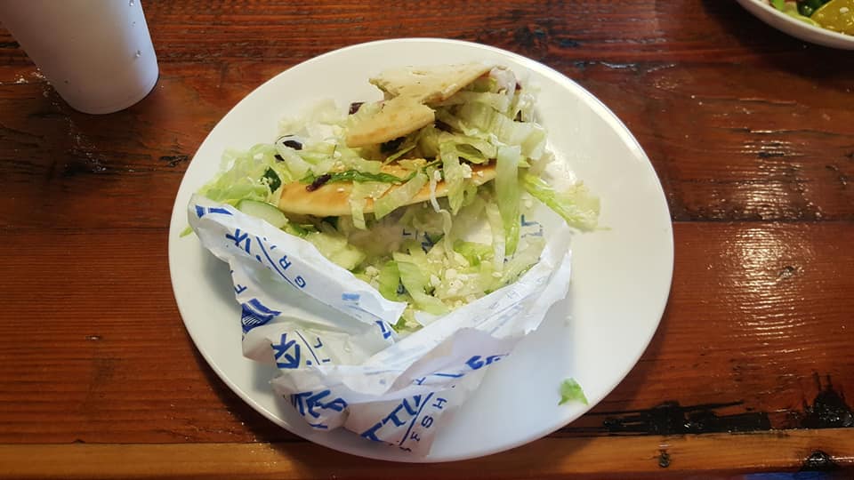 Taste: 5 Stars Fresh, Crisp, Delicious, a perfect amount of sauce already in the Gyro Pita. The chicken skewers meal was grilled and well-flavored. The Greek salad contained beets and bell peppers, which was different on a typical Americanized Greek salad, but the flavor combination was delicious.