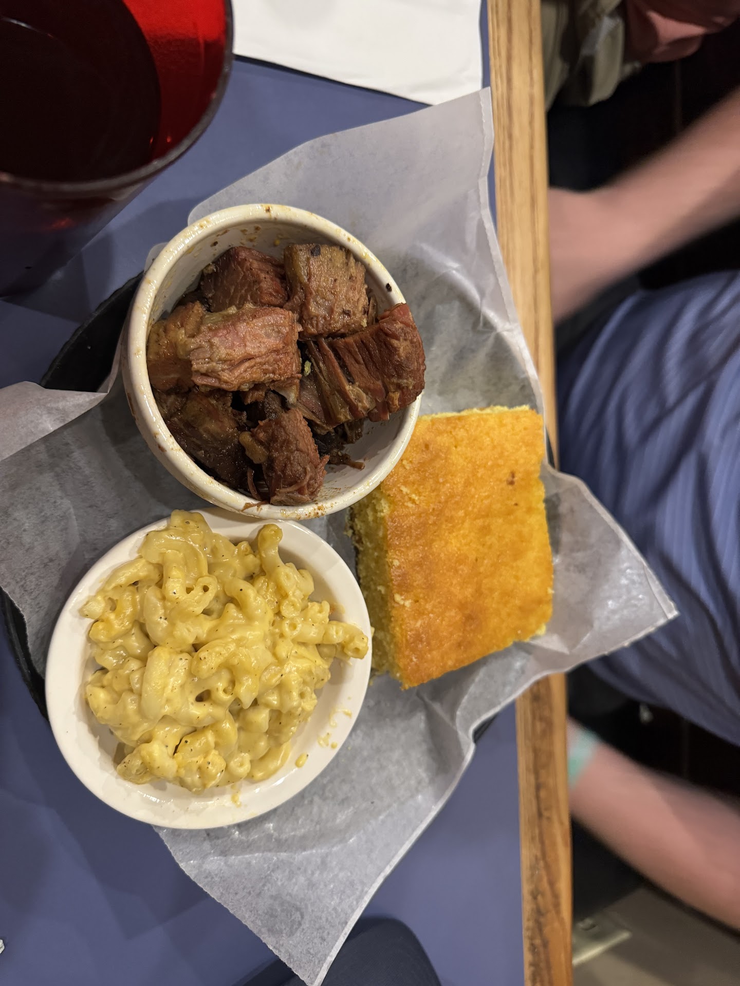 The burnt ends were another letdown, as they were overwhelmed with liquid smoke and lacked tenderness.