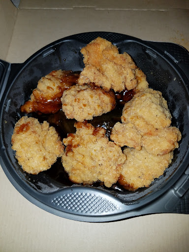 Poorly made. Four times, I'd ordered boneless wings in one sauce or another only to find that they'd simply put the sauce in the container, then threw the chicken in on top of the sauce. I have a picture of one of those times.
