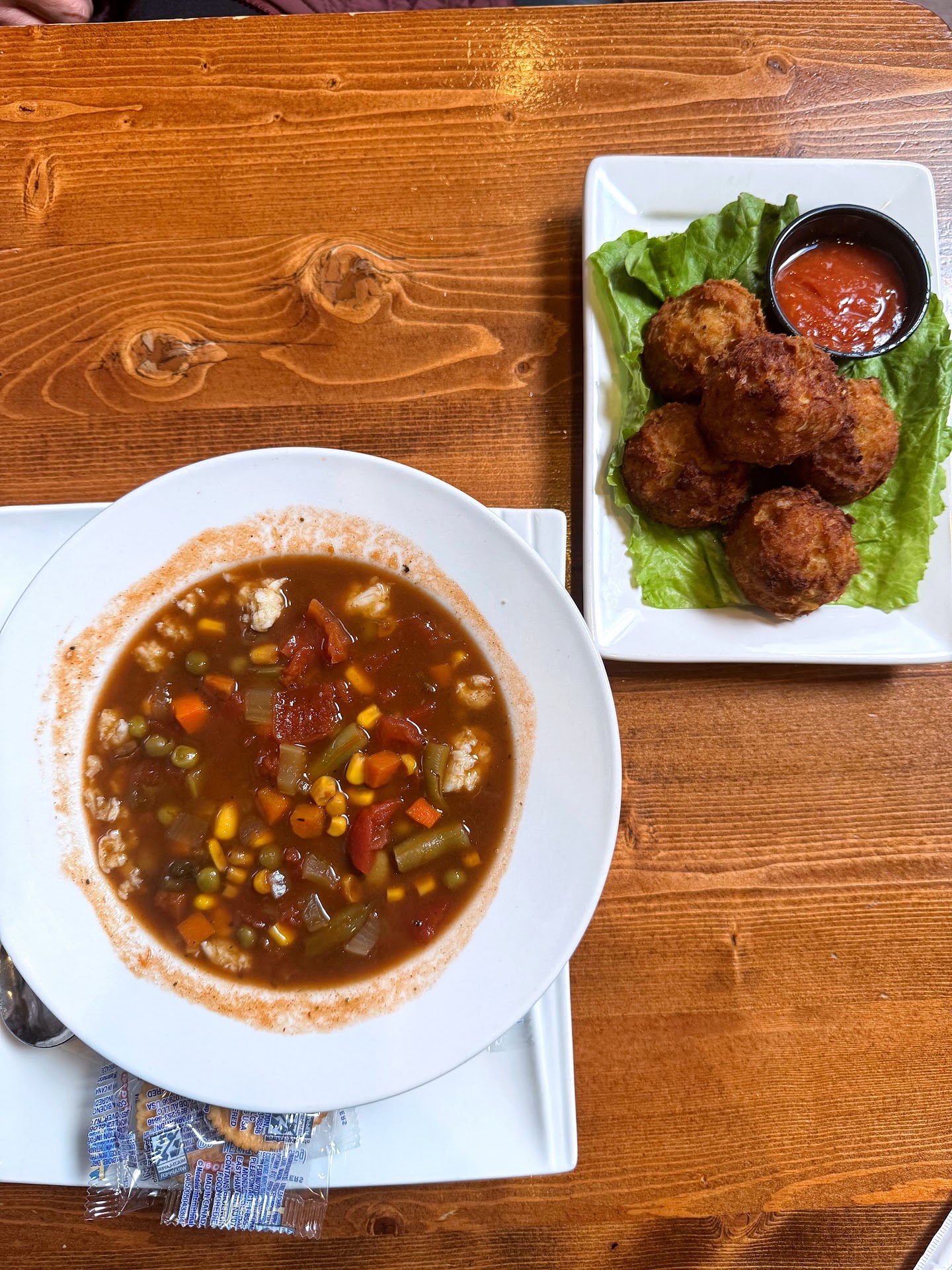 So many thoughts but let’s start with the food.. It started off strong with the crab balls and the vegetable crab soup. Both were good. The crab balls were filled with lots of crab meat and little to no filler. One thing I didn’t like was that the crab balls came with a side of cocktail sauce. That really threw me off since the two don’t tend to pair well together but the crab balls were seasoned enough themselves that a sauce wasn’t needed.