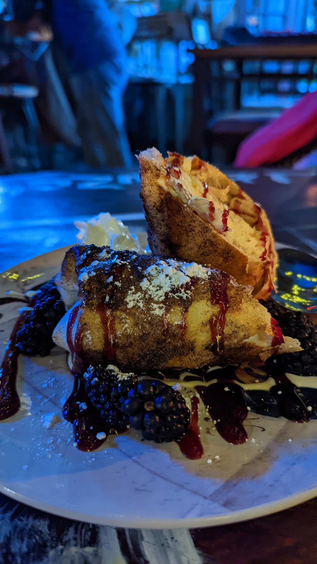 Read moreSo the girlfriend and I spent 3 days in St. Michaels and ate at many restaurants (and if you're looking for a quaint town with lots of food options def check out St. Michaels!). So on our 2nd night we decided to eat at Gina's which was a departure from our seafood laden haunts that we had been to since we arrived. The decor is amazing inside and the music was fun! The staff was all incredibly helpful (the bartender checked on us, the wait staff checked on us, even the busser checked on us!). But the food was the true highlight. Girlfriend had the Miami Tango Tacos which were delicious and not overwhelming and I had the special burrito of the day which was vegetarian and simply to die for. Dessert was only one option, the Xangos (pictured) and it was also so so good. Oh we each had a drink and the check was not outrageous whatsoever. After returning home we tried to decide what our favorite activity was in St. Michaels as well as place to eat. Activity was (big shoutout here) the Maritime Museum. Place to eat? Easily...