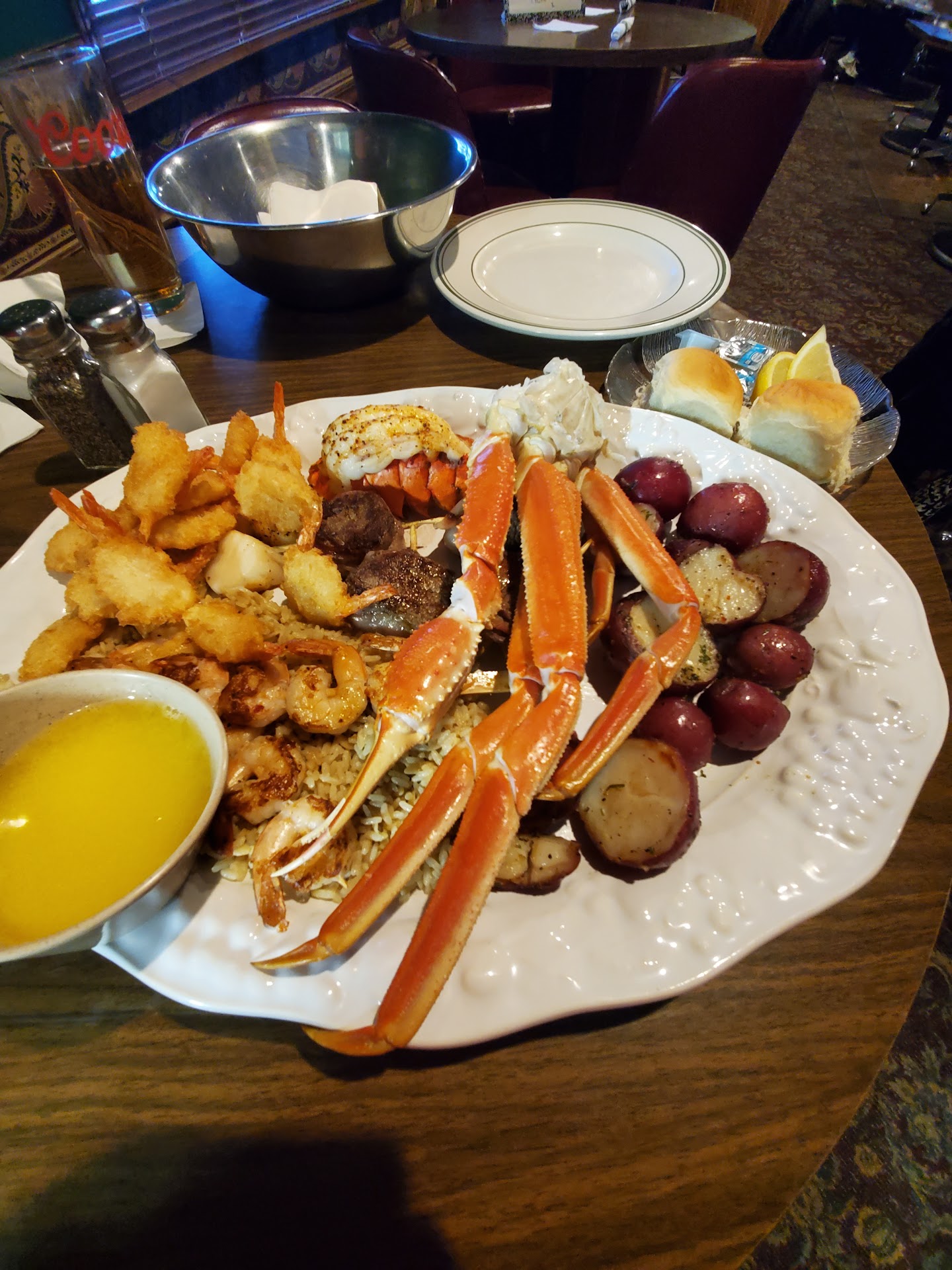 We had the Lenten buffet and it was absolutely delicious. All the food was cooked to perfection. I honestly felt like the price, $24.00, was well worth it. We had unlimited fried and baked Pollock, Salmon, butterfly shrimp, Scallops, grilled shrimp skewers, shrimp Alfredo, and some amazing garlic mashed potatoes. There is a salad bar and other things with the buffet but those were the things I had and they were perfect. The buffet was kept stocked full of the delicious food. Our waitress was awesome, super nice and kept us well hydrated. I noticed that all the waitress seemed to be very keenly aware of the customers and I don't think anybody had to wait for anything. I highly recommend trying this particular buffet...it is available on Fridays during...