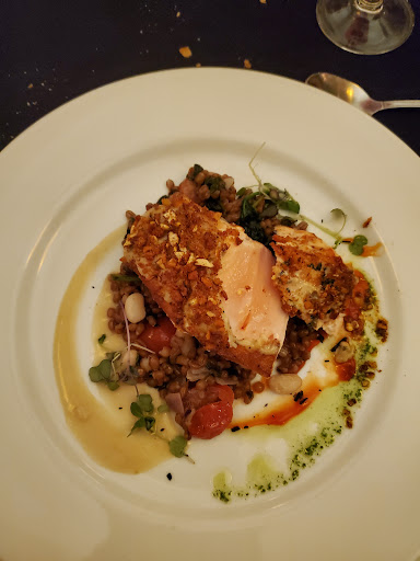 The salmon was incredible, honestly the best i can remember ever having. From the quality of the fish, the perfect medium rare cook, and the combined flavors of the crust and the small amount of sauce piped around to add just the right amount of flavor without hiding the salmon itself.