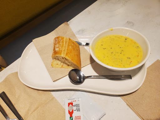 Read moreI ordered at the Kiosk along with a friend who ordered seperately. All I ordered was a chocolate croissant. Even though it asks you to input your name, the staff never called it out or anything, and this particular location has its seats partitioned off from the pickup area, which is as far as can be from the kiosks, so we didn't realize at first and just sat around politely for our food. Our bad with that, to be honest, but when we finally asked at the registers and got pointed in the right direction, my friend's food was done but not my croissant. We asked the worker at the pickup window to find my name in the order list but it wasn't there. I figured it wasn't worth causing a fuss to me, and I couldn't find it in my payment statements at the time so I figured my order didn't process...Sure enough, here I am now looking at the almost four dollars I was charged at Panera. Nothing against the staff of course; I mean they tried to look for my name and didn't find it. But man, be prepared to either have your order lost, cause a scene for it, or give up your email to yet another company that wants to spam your inbox in order to get a receipt. I will admit though I tried my friend's cookie and it was pretty good. Might risk it all again for one of those if I ever get dragged...