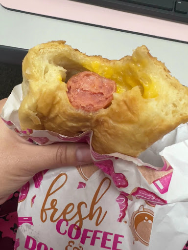 There are 4 things to try. First are the glazed doughnuts or holes. Second sausage and cheese beef or pork. Third are their croissant breakfast sandwiches 🥓 is my choice. Fourth but not least the blueberry cake donut.
