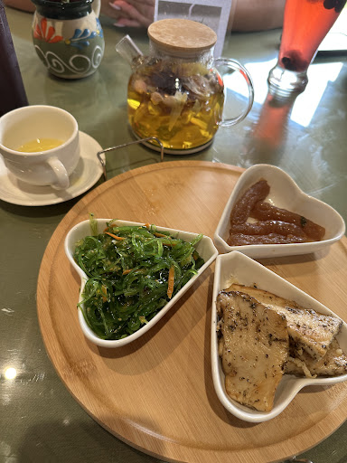 Read moreI'm so glad to have recently discovered this hidden gem, nestled inside a Buddhist temple! What a treat for all the senses. We were delighted by the diverse flavors among the four dishes we ordered, including the kale fried rice, potstickers, ground mushroom and vegetarian ham noodles, and kimchi-tofu pot. All were delicious, but the fried rice and noodle dish were my favorites. I also highly recommend the special fruit tea. So warm and comforting! If you are looking for a quiet, serene setting with garden views and delectable and reasonably priced, vegetarian dishes, this...