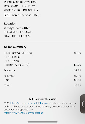 Read moreHello my fast food friends, please avoid this Wendy's location at all costs. The first issue of course is terrible customer service. One time I pulled up to the intercom and there was no answer, so I politely asked, "Hello?" The response was, "Give me a minute!!" Ummm...ok? Attitude much? Whatever happened to, "I'll be with you in a moment."