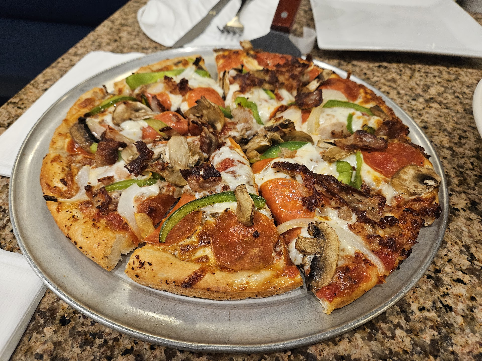 Growing up in Stamford, Atlantic pizza was a hot spot. It was family run, cozy and comforting. So since we were in town, we decided to have a little pizza party for my nephew. It was a Sunday and we parked on bank street. My aunt parked by the adjacent church. We were sat at two tables. They have cushioned bench seating and metal chairs. The tables aren't set in the floor so you can move them out if you need more 'belly' space. IYKYK. I ordered waters for everyone and a few of us ordered soda and juice. I guess our server thought those who ordered drinks didn't need the water bc we didn't get a cup. But even after I asked if she could bring me a cup, she still didn't. I drank my sister's water. We ordered a large pepperoni pizza, a small cheese, a tuna melt wrap, chicken fingers with fried, chicken wings with rice, a burger and I wanted a salad and asked if they could put tuna on top, she said no. Weird that they sell salad, they sell tuna, but don't have a tuna salad on the menu? And could not even accommodate? So I got a tuna on hard roll. None of the sandwiches came with fries, which was surprising. Despite all those annoyances, the food was good, the place seemed clean and orderly. The customer service and atmosphere was not what it used to be, no homey feel at all, but putting that aside, it was decent, except for the water! Tried to use tap to pay, but the machine wasn't working, had to get someone else in my party to use their card. Thank goodness! All in all, it was good to visit, we enjoyed our food, the server was nice, parking was miraculously easy (it was mothers day). I would go back if I were in Stamford- but there's more better family oriented places to go...