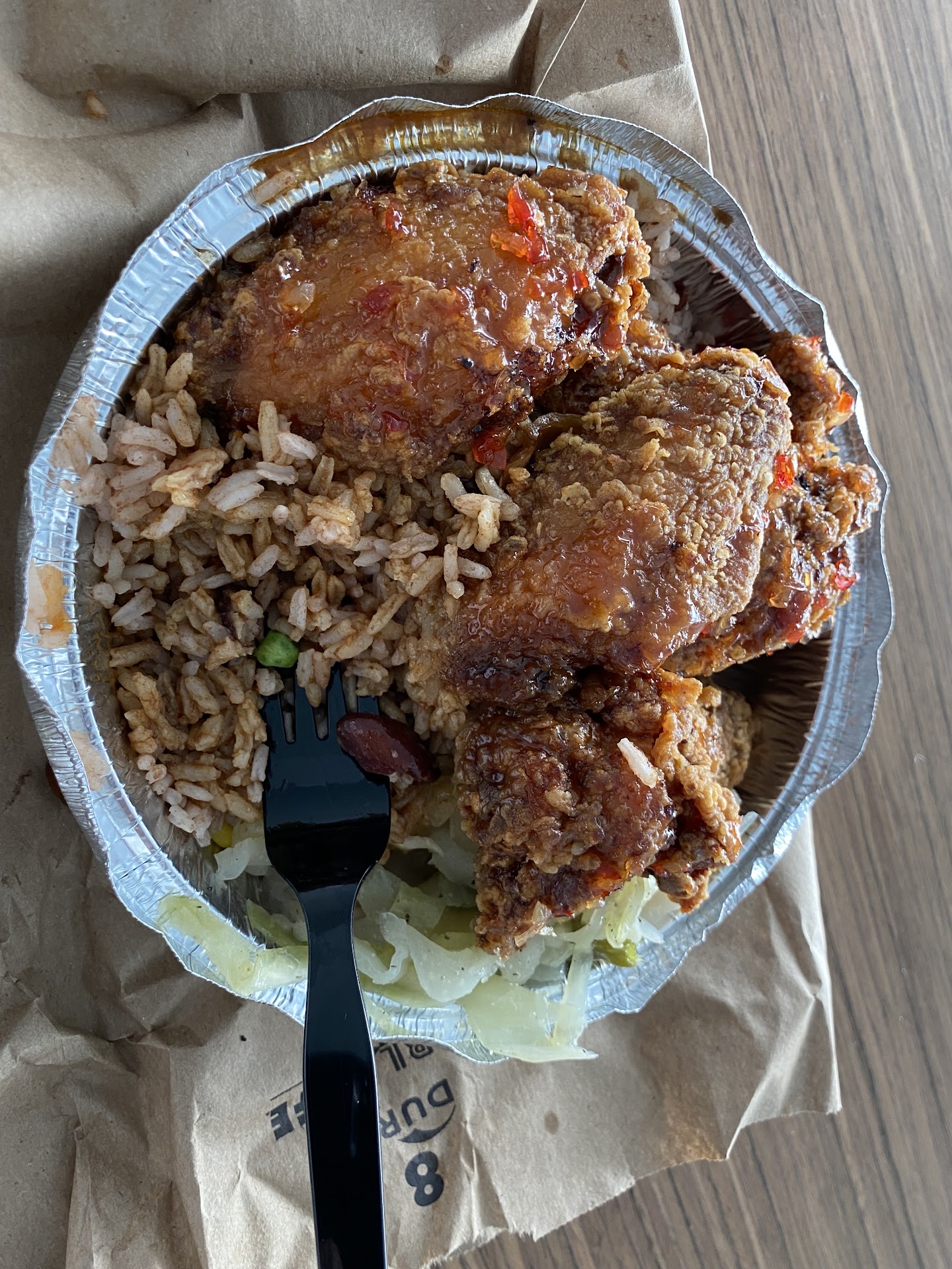 I asked what did they have and was given some options. So I decided on one of the options, the stew peas which another customer said to me great choice. When the lady was fishing out the stew peas the other staff took that customer. He also wanted to stew peas and was told that it was done. Only gravy was left which he was okay with it, he wanted it anyway. Made me think this food is really good!