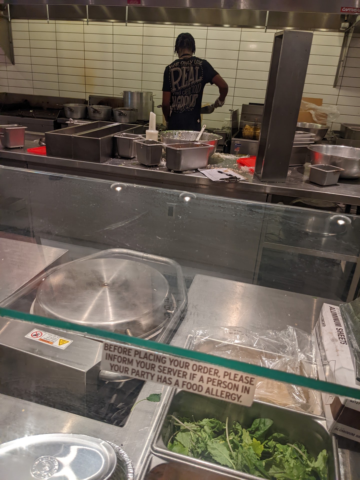 Read moreI never thought I’d review a Chipotle, but this location is notably bad. Kinda feels like I’ve walked in on a kids birthday party where the adults were gone for too long. The food line can be a mess, ingredients mixed together, slops of salsa/sour cream/guacamole on the counter. The soda and napkins always look like a Jack in a Box just went off. They have two Coca Cola dispensers and neither of them work. I actually find this comedic. Like one of the two streams would always shoot straight water, but it would change. So they closed one permanently and now neither of them work. Like I’m not even mad anymore it’s just funny. Anyway, it seems there’s only ever one employee serving as the line and cashier while random people in the back are doing… something? Ingredients are always low.