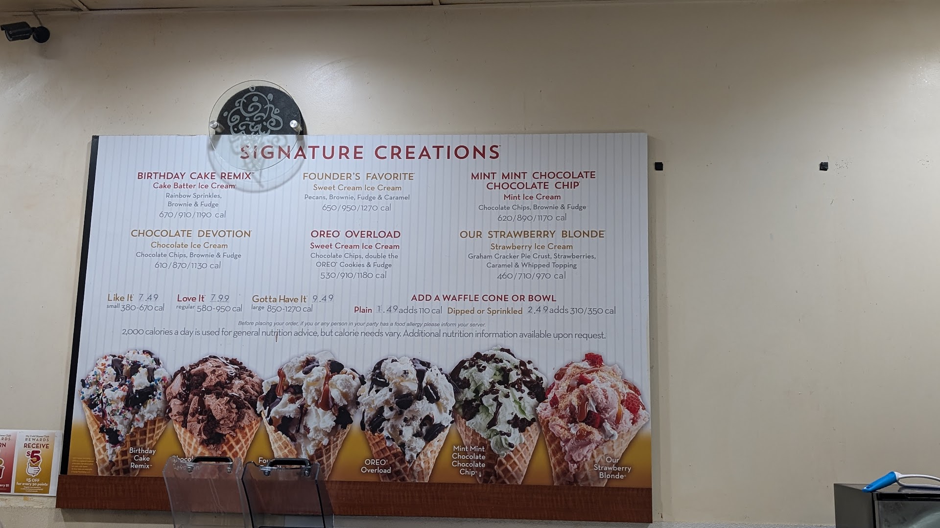 Read moreMy family and I went back to cold stone after a while, I hadn’t been there for 8 years or so - we’ve been having store bought natural ice cream mostly at home but decided to give my kids the ice cream store experience for the first time by going there since I could remember the ice cream was good back then. OMG we ordered chocolate pistachio banana and mint chocolate chip ice creams. They tasted a bit artificial but they were average, I could feel they were not like before. Well yesterday evening we all had the worst stomachaches we have ever experienced. My kids got SICK too and took a while to put them in bed after trying to make them feel better. I checked the ingredients online and they are ALL so ARTIFICIAL, the pistachio ice cream even contains ethanol and NO pistachios at all! Very disappointed at how the quality there really has dropped over the years. Will not...