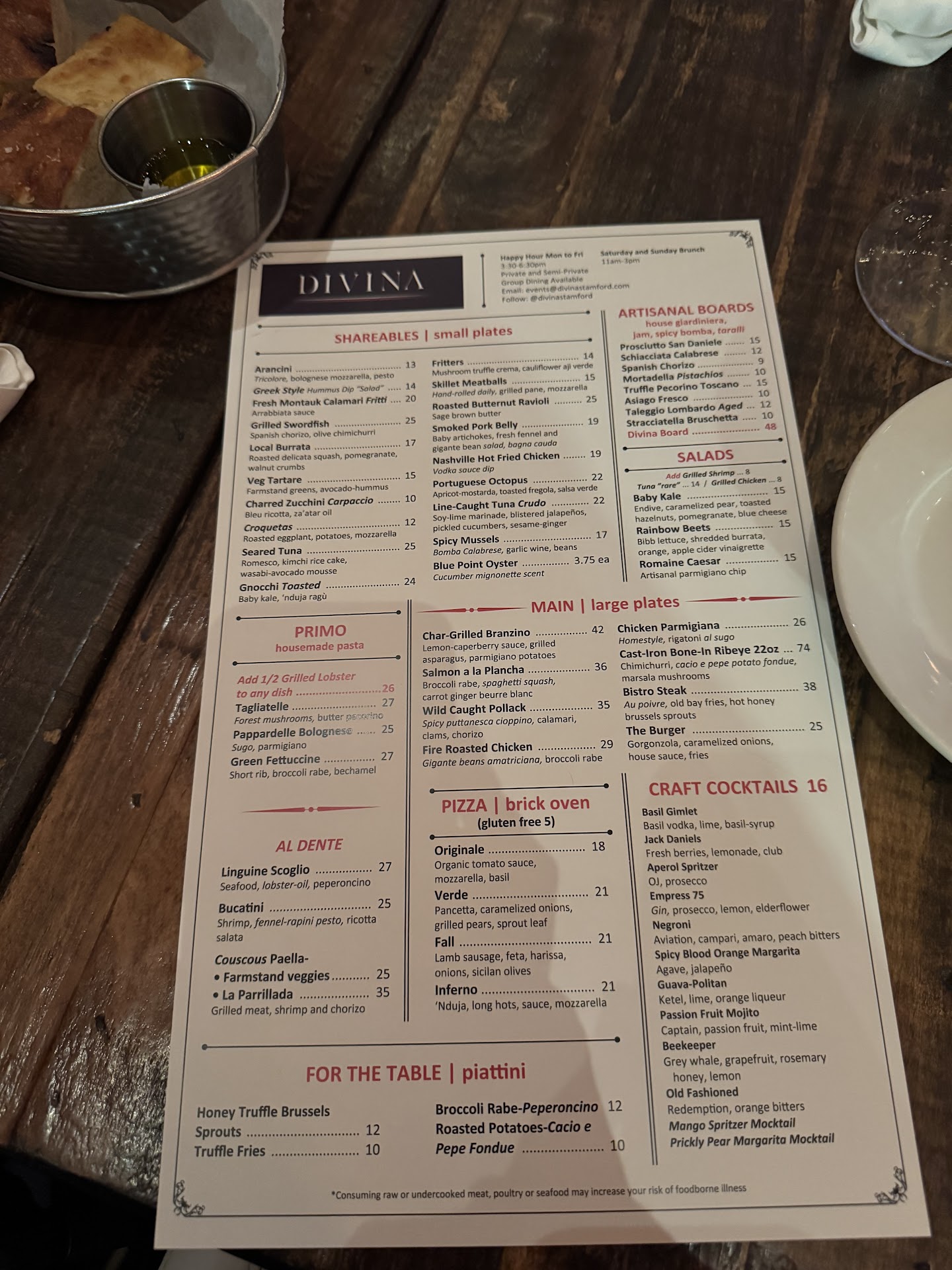 Read moreThis is a situation where one aspect of the experience dragged down the overall rating. The food is good (nothing amazing and portions are ok - could be a little more generous). The waiter should not be in the hospitality business. Not a kind word, not a smile, just giving the vibe that the last place he wanted to be was at Divina. Walked by our table multiple times and never cleared glasses that were empty, asked how thing are and had to ask if we wanted a dessert menu (just give it to us - amazing how many restaurants miss the opportunity to sell desserts because they ask if one wants a menu). I do want to point out that the busboy and the woman who brought our dishes were particularly kind, helpful and smiling. They saved the review from being a 3. One last quibble - the manager walks around and the only thing we saw him do was to straighten the bar stools. How about engaging with your guests and noticing things on the table that...