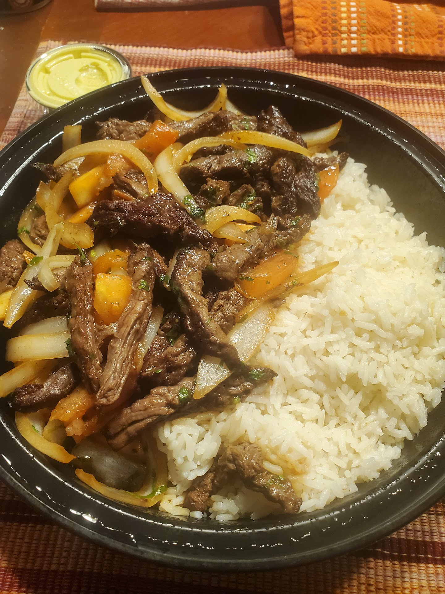 Food wise I ordered the lomo saltado with skirt steak upgrade and let me tell you it was the best lomo saltado I've had, I couldn't believe how well balanced and tender it all was, the rice was plain but with the sauce from lomo and the green sauce made it taste amazing, fries were perfect size and felt fresh.