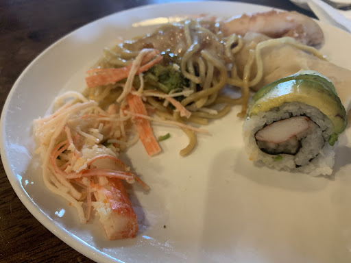 Live hibachi bar was inactive during that time, Kani salad also had an incorrect taste, and the fried shrimp were unnecessarily challenging. Ex. Head-on shrimp/unshelled/deep fried = the most annoying and overwhelming item to consume. It’s not one of those seasoned dishes where the shells help to enhance the flavor, etc, so instead attaches to the shrimp meat so intensely due to the length of frying, causing for a cumbersome effort to pick off the shells. Thus, creating a considerable mess of crumps and shell pieces flashing chaotically off both sides of your plate. OMG! I just found myself confused & largely disappointed overall. Furthermore, my stomach didn’t fair well after that meal, so the post lunch feedback was worse than the actual experience which sucks because the location is nice. Stone corner lot building – sizeable real estate with plenty of garage parking. Inside the venue, however, is equally unappealing as the buffet bar (depressed furniture, poor lighting, and a dark/sad...