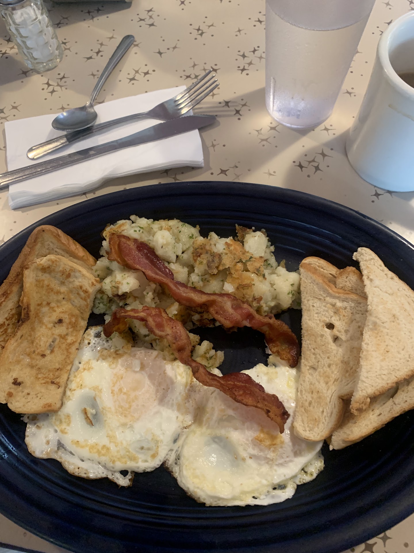 Read moreA lady who ordered her food for pickup came in and complained that they only take cash and they should have it posted somewhere if that is their policy. The waitress had a snarky answer prepared of "well we don't advertise that we take credit cards either." Then when the customer left the two waitresses laughed it off like they thought her complaint wasn't valid. Like it's not 2018 and people don't have an expectation that they can use their credit card in a restaurant. That was kind of the customer service experience that I saw while I was there. I sat at the bar right next to the register and no one even once came by to ask me how my food was or if I needed anything and actually I did want a water but no one came and asked. I did get a couple times waitresses looked at me but none bothered to come over and ask if I needed anything. When I finally got my check I told them I agreed with the lady about putting up a poster if you only take cash. I had also planned to use my card but luckily had enough cash. It seems that this is a complaint they've heard before by the way they had an answer all ready to go so you would think instead of practicing an answer to that customer complaint they would just put up a poster. But I guess that's too much work for them. Anyway, I had an omelette and it was good. But I'm pretty sure they charged me 75 cents for whipped cream on my hot chocolate....