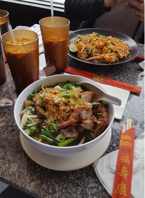 Read moreI pass by this place so often but didn't get a chance to eat here until recently with a friend. It wasn't hard to find parking and the staff was very friendly upon walking in. Inside is very small but it was never uncomfortable. I think during the weekdays before 2pm is the best time to come. Their menu choices made it hard to choose what we wanted because it all sounded so good! I've never had Thai food before, but I tried their Mee duck noodle soup which was a must try. The menu items not only sound tasty, but the dishes looked like a rainbow of bright colors with an amazing amount of flavor to match! I couldn't finish everything in one go due to tooth problems but I will definitely visit again soon to try the Tom-Yum soup, Prew Warn, and Mango coconut sticky rice. If you ever get the chance to come, everyone should always try the Thai tea! Pros: A variety of flavorful food, kind staff, fast service, good parking, comfortable atmosphere, Thai tea Cons: Space may be too small for larger...
