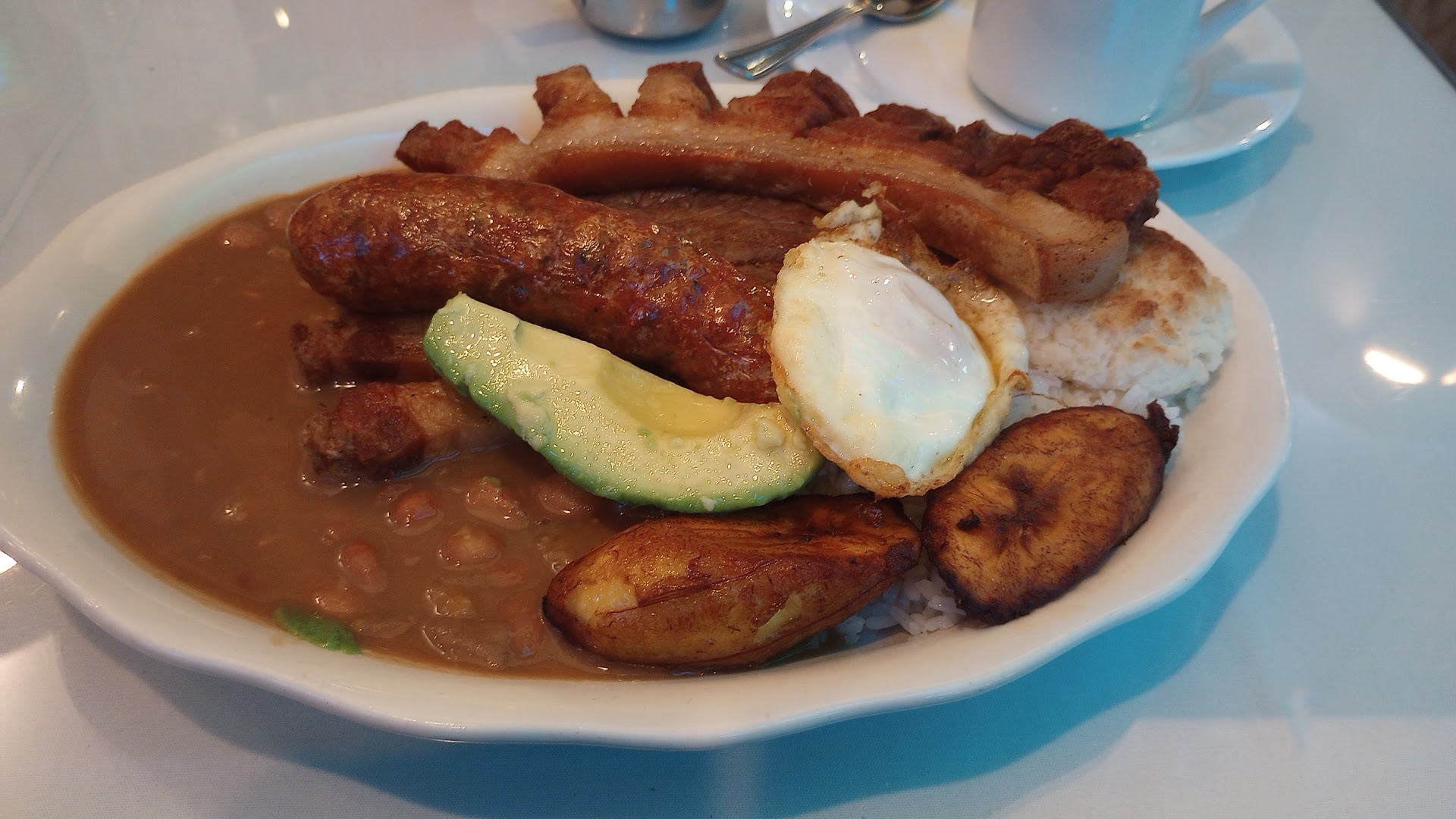 The restaurant was a classic mom-and-pop joint, kind of like El Paisa back in Rhode Island. I wasn’t exactly hungry, but curiosity won me over. Walking in, we saw blue tables in a cozy little space. As soon as we sat down, Ana Gabriel’s song Luna started playing in the background. I couldn’t help but share a few random facts I remembered about her with my husband—who, bless him, pretended to be interested.