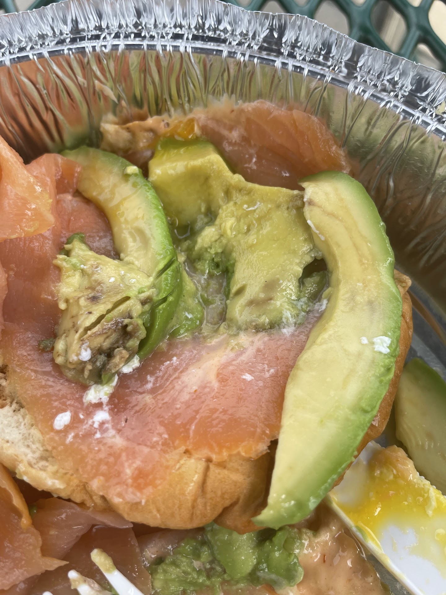Today I went in after checking the menu online and seeing the avocado toast. I found out that’s not available right now, so I instead went with poached eggs, salmon, and avocado on brioche (I was told there was not another bread choice). I ordered this, and then somehow lost my place in line even though I had more to order. I know it’s hard to keep up on a busy morning so I didn’t mind, and was joking with other customers about musical line spots (nobody seemed to know where to stand to order or to wait, so two women waiting for something to the left of the registers confused everyone, and then people started waiting all over thinking they were next). I had the rest of my order taken my a second person, and asked for iced coffee, a small pack of biscotti, and a few macaron cookies. It took quite a while to get all of this because they were helping other people between, but I was rung up and it totaled just over $31. I asked for a receipt mostly out of curiosity for the coffee and cookie prices but she wasn’t able to print one. I didn’t mind the long wait for the sandwich although I had to keep moving to try and find a place I wasn’t in the way of someone trying to order or trying to sit at a table. It wasn’t really that busy, maybe 3-4 people trying to order; it was more that there was no system to where to stand so people were moving around confused and taking up extra space rather than queuing . I was glad to finally have my order, over 20 min later, and took it home. I opened the breakfast special and found it hard to cut through with a knife, because the brioche, which was really more or less a hamburger bun, was so chewy. It seemed like it had been sitting out and then heated up. I actually picked it up to take a bite instead and found the texture awful. I also tasted something sour, which I then realized was the avocado. It wasn’t just browning a little but still good— you could taste it turning bad. Combined with the taste of salmon it was stomach-turning. I took a few photos, picked out some of the salmon, and tossed the rest. I tried the macaron cookies and biscotti instead. Meh. I was really disappointed as these are two of my all time factories. The macarons were ok, but one was crushed and the filling texture wasn’t quite right, the flavors nothing special. The biscotti was sort of soft and chewy, not the dry, dunkable baked goodness you want. I didn’t toss these, since they’re edible and maybe I’ll try to bake them a bit more in the oven, but I didn’t bother wasting calories on them...
