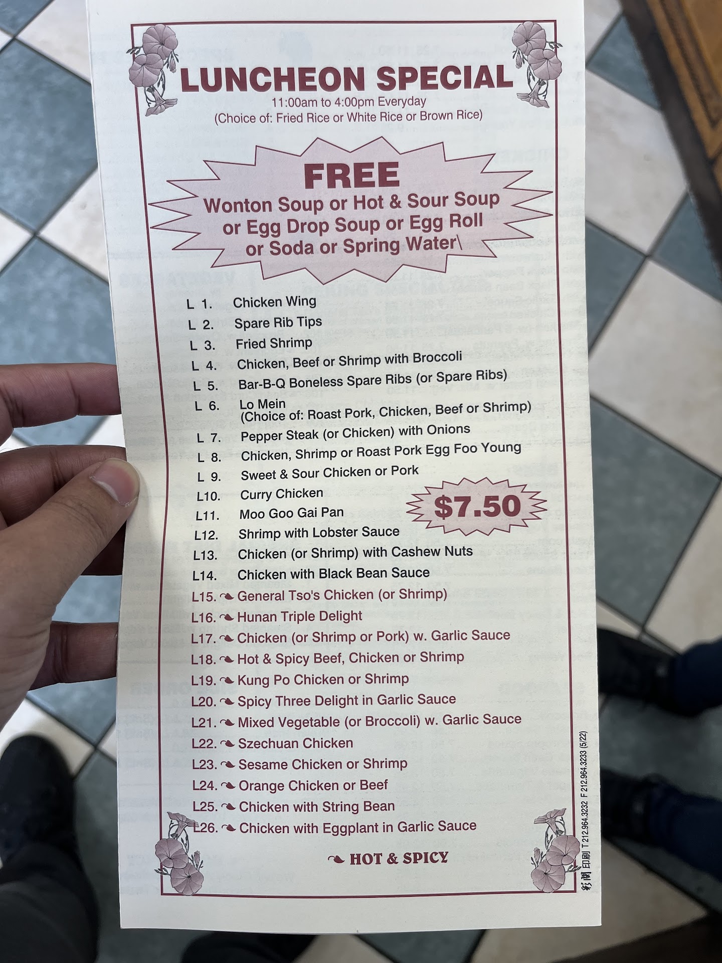 Very well respected for their Chicken dishes solid Chicken with Broccoli, (Moo Goo Gai Pan is my defacto) and see they do a ton of fried chicken. Steamed Dumplings are good (great sauce) Great owner, staff are friendly multilingual (yes Spanish too). Strip mall with parking. Portion size is enormous for all dishes. Very reasonable dinner combinations under $8.00. Place is generally clean, very well lit, cameras and safe. East side has Pearl East & Blue Ginger but 4 us West...