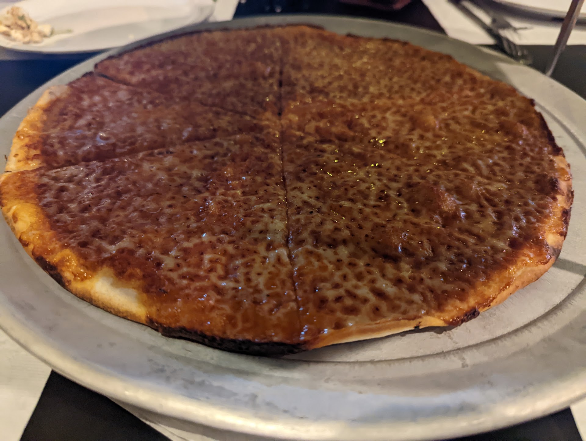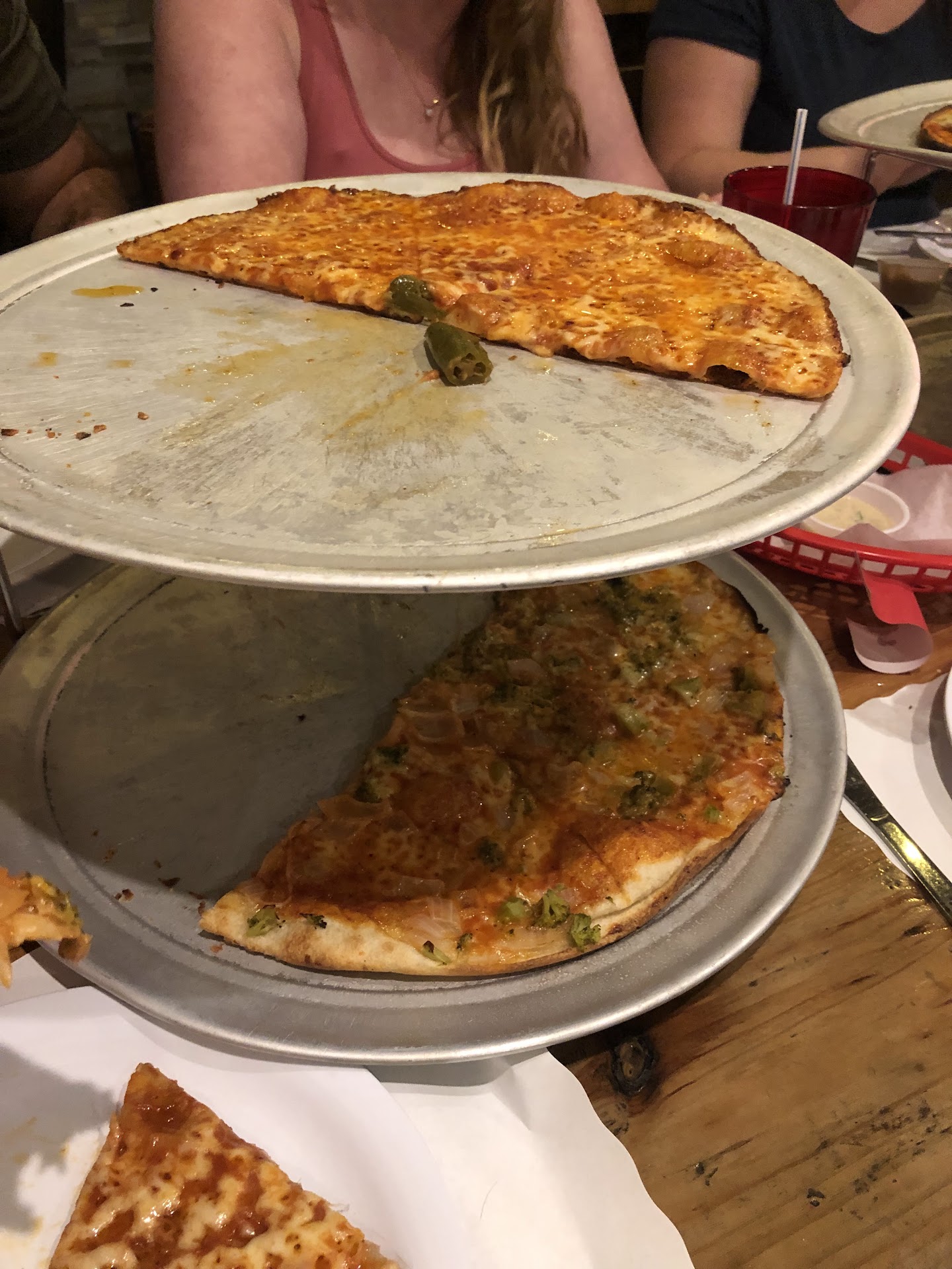 Unfortunately the pizza was really disappointing. Everyone knows Riko's is a Colony knock off, and when they first opened in the area it was really convenient and we ordered take out and delivery often. But, I think they've gotten too comfortable and the pizza lately has been so greasy it's almost not edible and that was our experience here. Pizza's naturally greasy but not to this extend. I would encourage visiting for a drink...if your looking for a good thin crust pizza take the ride down to Colony or even go up to Vinny's, hopefully Riko's steps...