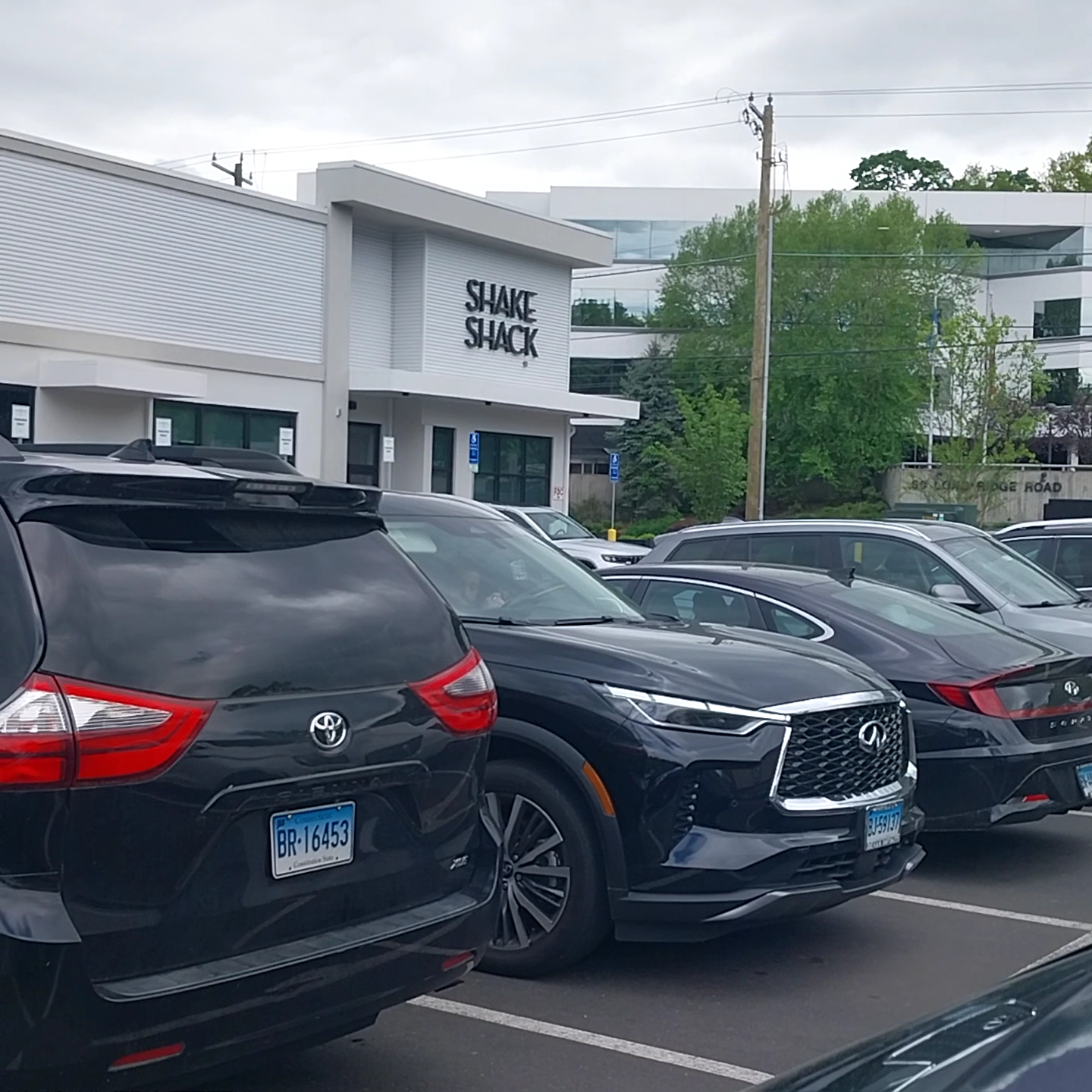 I was in town and hungry with two hungry teen boys. In this center is the shake shack, pepes pizza, a starbucks.... we don't have shake shack in bridgeport so we opted to try it out. Walk in and you're immediately introduced to the self order machines. Put in your order, and on the desk are numerous metal sticks with a number. Pick one and put that number in. When you sit at a table, that's the number they look for to bring your food. The prices are decent until you realize they don't come with fries. Crazy. We got a BBQ double burger, 10 chicken bites, and a veggie burger. I ordered a ranch fry to share. An oreo shake, a large diet coke, and a fruit punch drink. That was all about $67. The thing is we would have spent same at a burger King or McDonald's these days (but we would of each had our own fry at least). We sat by a window. We were served in good time. The place was airy and echoes, not warm and cozy at all. Nothing wrong with that, just mentioning it. I feel like you could have decent private conversations here if needed, would be a nice date choice. But you can also push some tables together for a decent group or family outing. There's outside seating here, it was too windy for us today. The bbq burger came with fried pickle chips which were really good. The chicken bites were smaller than a tender, bigger than a nugget. My veggie burger was light but meaty. The avocado made it more filling, the crispy onions gave me that salt, crunch I wanted, there was a nice sauce on it too. The ranch fries were enjoyed by all of us. Needed a bigger size! They are spicy, the ranch sauce was so good I was dipping my burger in it. I'm from Stamford but haven't lived here for over 20yrs. It's nice to see what they converted this area into. I think this used to be the Bloomingdale building. Anyway, the place was clean, they have condiments area, bathrooms, lots of garbage bins. Ample free parking in the lot. We all said we world go back ! Next time I will have to...