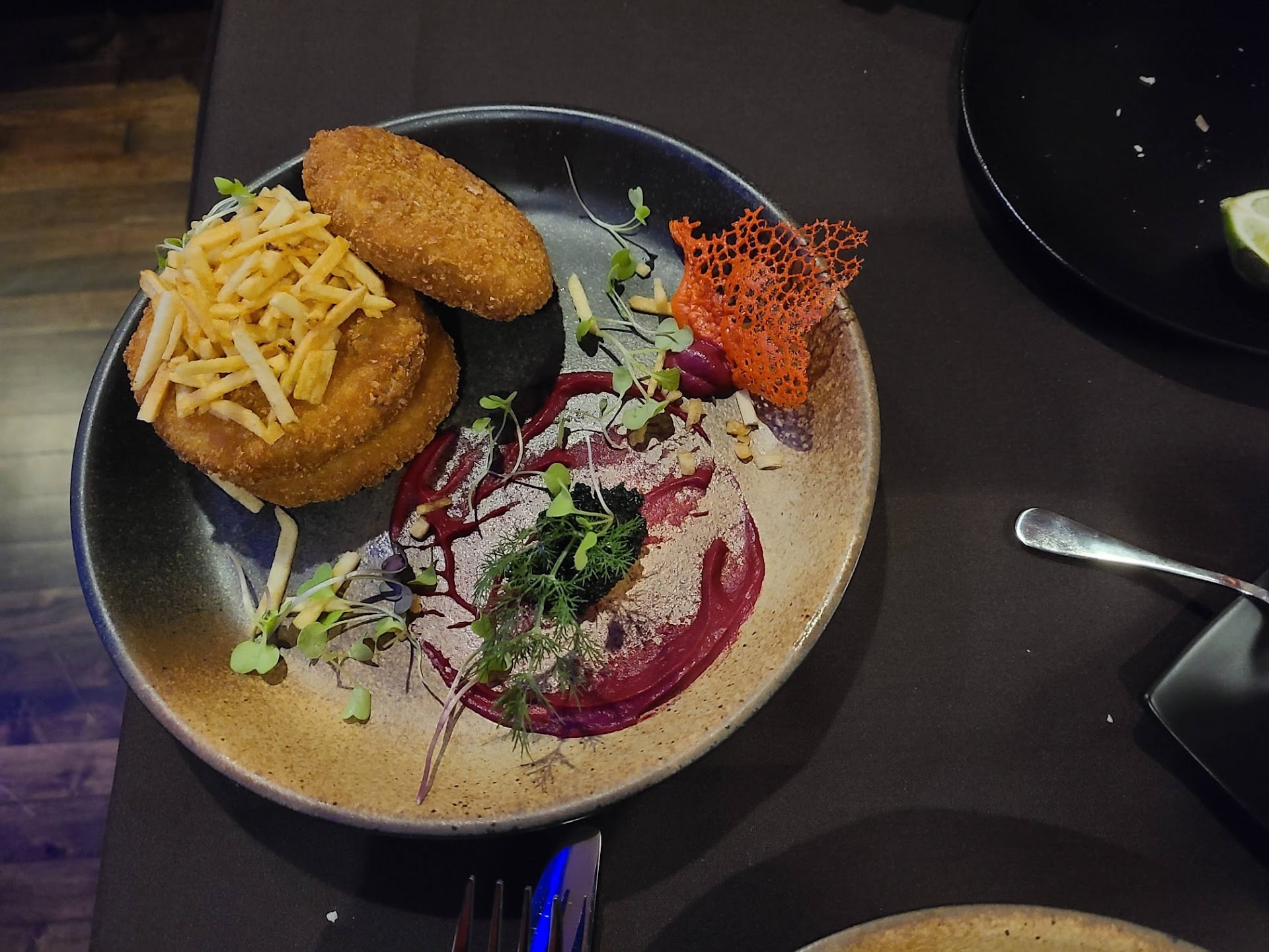 Masala Crab Cakes: Though named Masala crab cakes these aren't spicy at all. They have americanised it. Comes with Caviar and beautiful garnishing.
