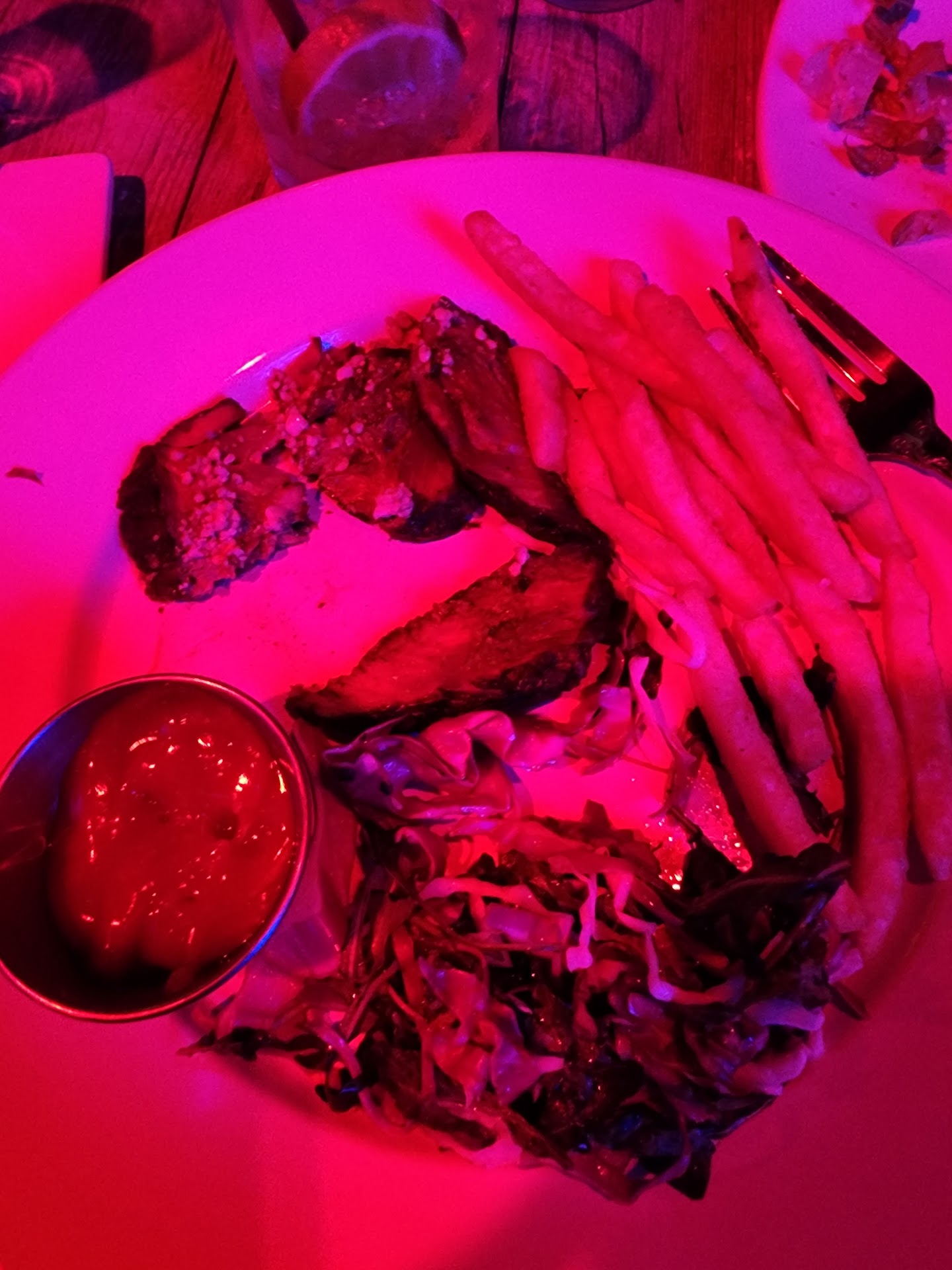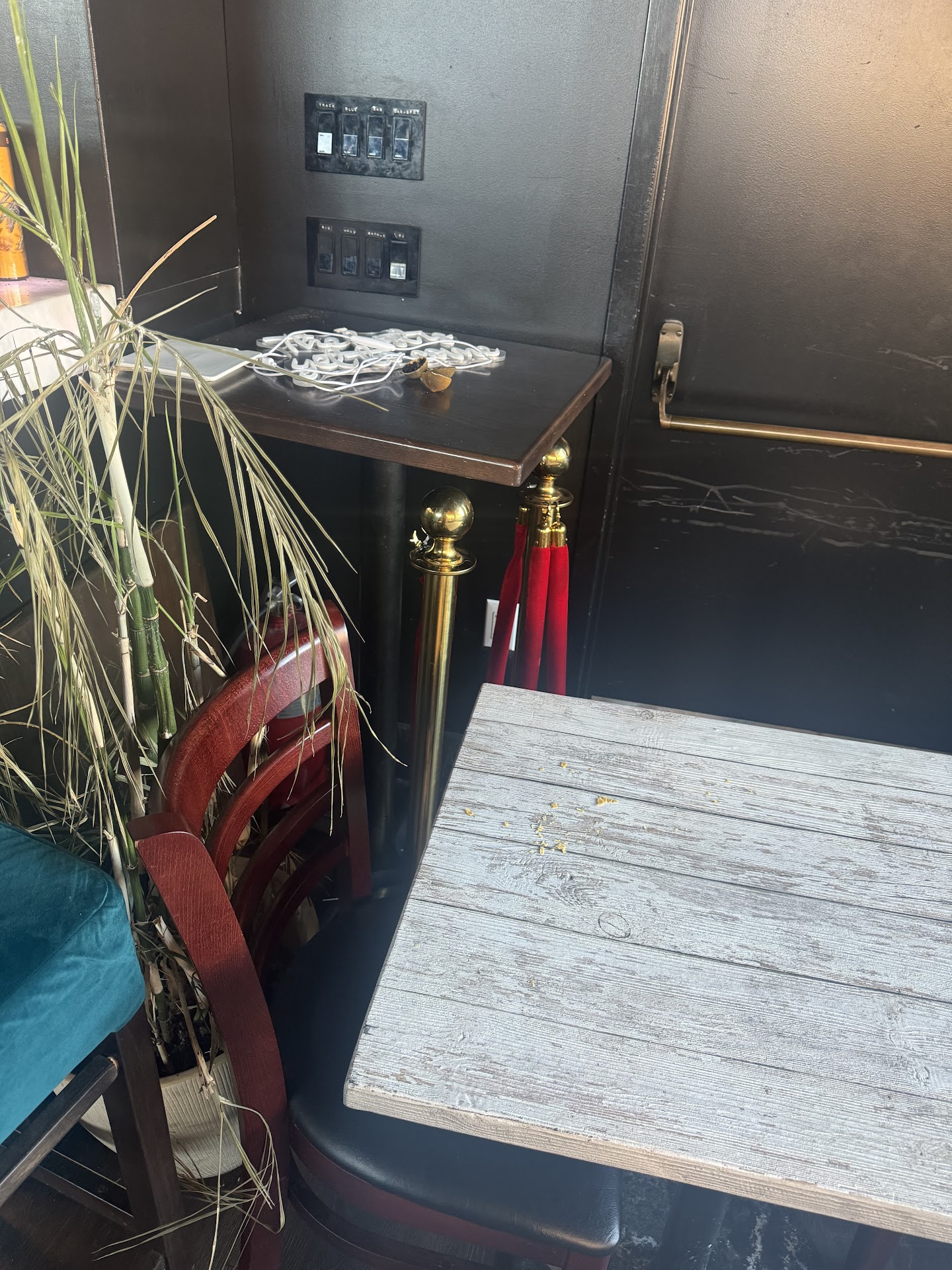 We were then seated in the area where the party was supposed to be set up. The tables were filthy, with confetti still scattered from a prior event. My coworker and I even had to assist in passing out glasses, which were dirty and had lipstick stains. There was only one person working the floor, which made everything even more chaotic. Additionally, the food service was disorganized. The waitress/bartender brought out the food in small amounts and asked me where to place it, despite the fact that it had already been clearly communicated beforehand that the food was to be served buffet/cocktail style, which was also mentioned again when we walked through the door. The lack of urgency to properly set up the tables and arrange the food was astonishing. The food was just placed on the tables where everyone was sitting and waiting instead.