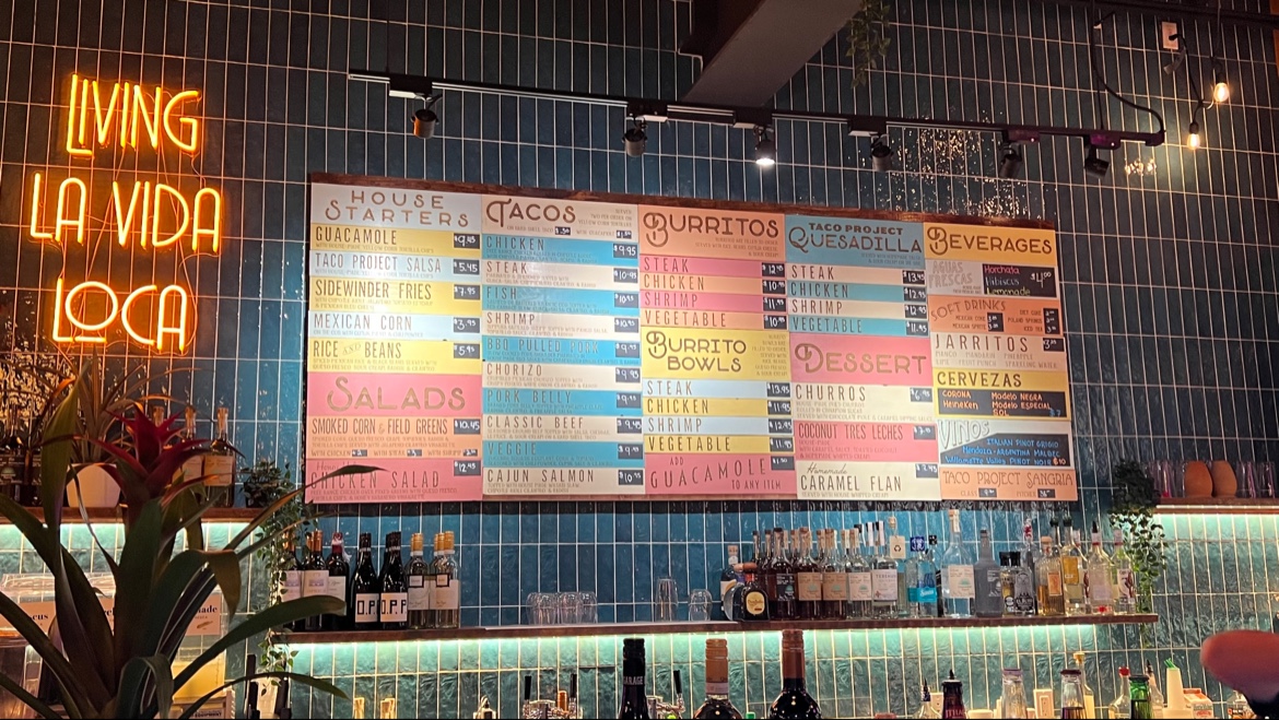 Got steak tacos, shrimp tacos, a salmon taco bowl, and churros. The salmon bowl was great. The tacos were good - they keep them minimal here but I enjoyed the flavor. It didn’t need all the extras. I was surprised the shrimp on the tacos were fried, and I would’ve preferred they weren’t, but that’s how they do them here I guess and they were fine. The tacos start at about $10 for 2, which is high compared to other places around. Also from what I could tell you can’t just order one taco of steak, for example, and get a variety to try a bunch. It has to be two at a time.