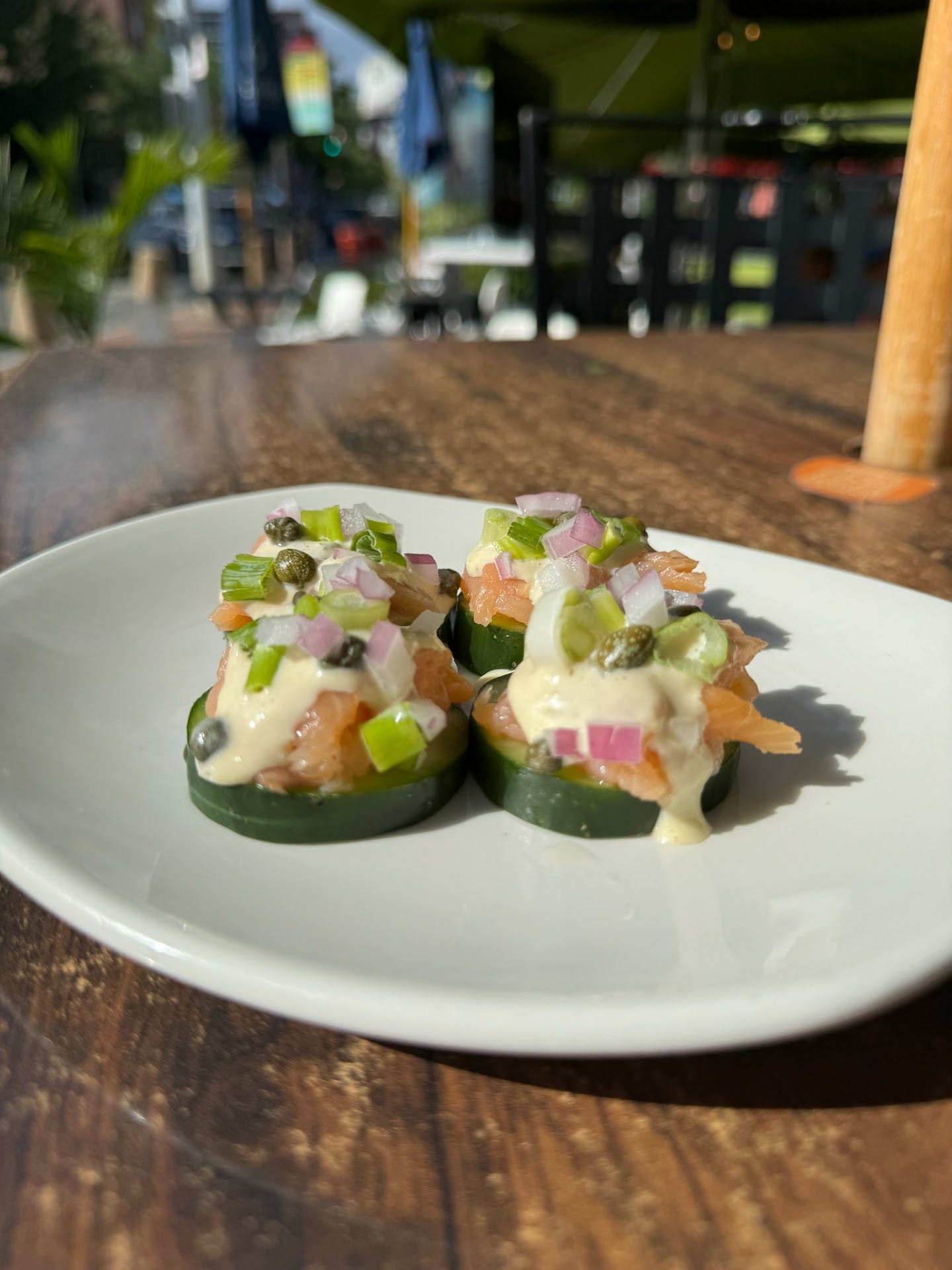When we arrived, our waitress basically gave us our menus and walked off, no explanation of happy hour specials or anything, and no clarification when we ordered. It almost felt like we were an afterthought of a table, which isn’t how you want to be treated on a night out. When we ordered the fish tacos, I told her I’m lactose intolerant, and asked if there was any cheese or dairy on the dish. She had no clue, so I just asked her to put it on the side if there ended up being any included. Look, I don’t want to have issues digesting dairy, and I know others don’t like a hassle, but waitstaff should have a basic understanding of allergens in the food. For what it’s worth, the hot sauce they put on the fish tacos takes over the taste of anything else on there. Not the heat, the actual vinegary, Frank’s Red Hot flavor. Would not recommend this dish.