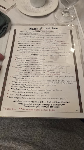 The Black Forest Inn has always delivered an outstanding, end to end fine German-Continental dining experience for me and my family, starting with plenty of parking through and including coffee and dessert.