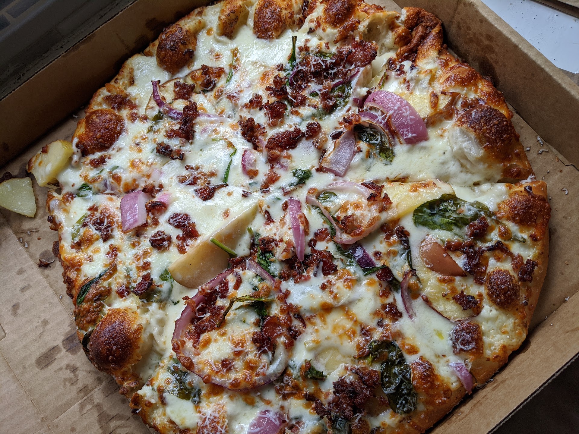 After an 8 mile strenuous hike, this pizza brought me life. We've been eating food we cooked in our RV for a while now, but it just wasn't going to cut it after today's hike.