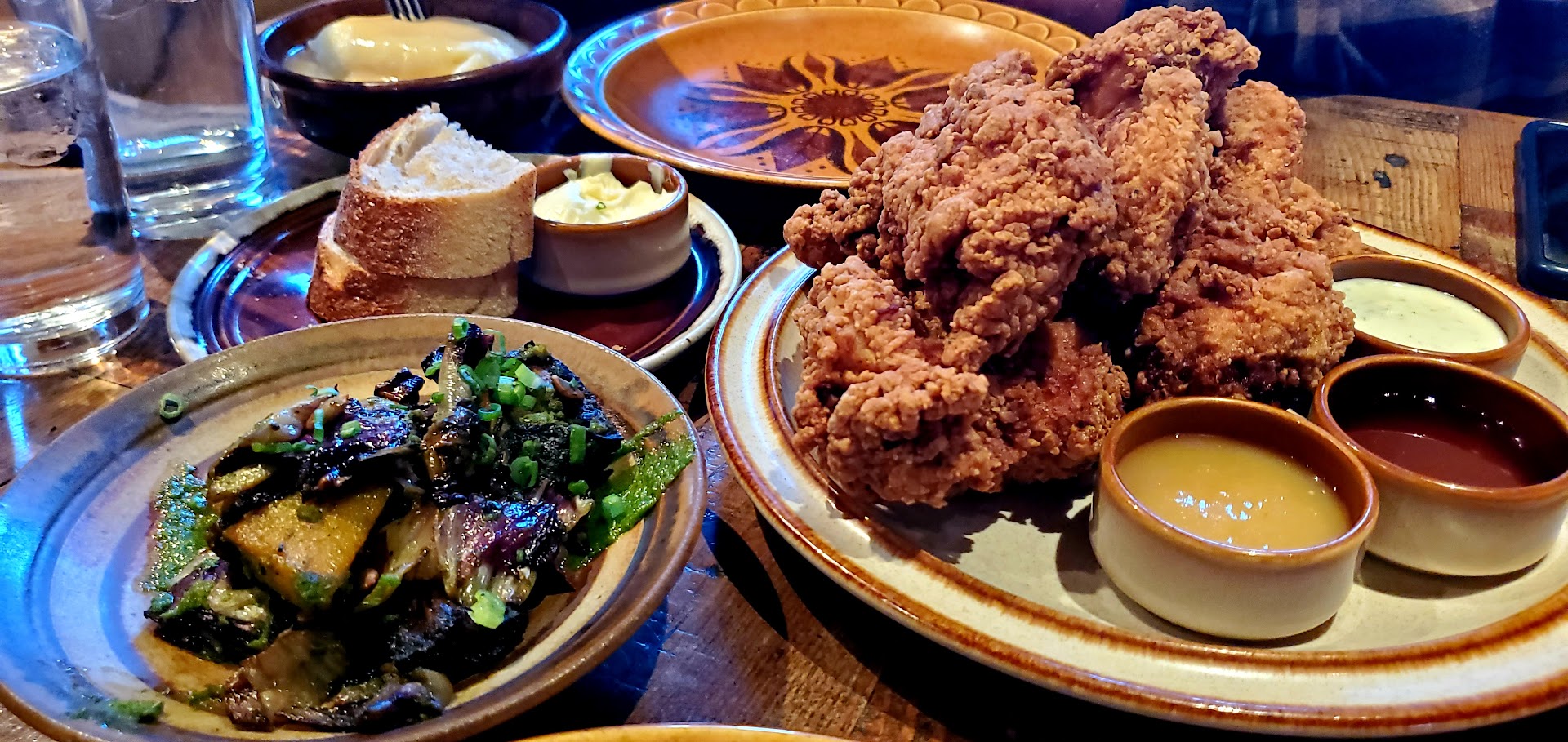 Read moreThis is a special place. The decor creates a warm, cozy vibe with lovely tapestries, pretty stained glass windows, simple plants, and wood furniture. All put together so beautifully and artfully placed. The tableware is miss matched but ties together with warm colors and âhomeyâ patterns. Our server was friendly and helpful, with a casual, welcoming vibe. We chose a couple interesting beers from a great list and placed our order; fried chicken for two! Wow, I say WOW! Crispy flaky breading, super juicy and tender, simple but perfectly seasoned, DELICIOUS! Dinner came with a lovely fresh salad, mashed potatoes and warm sourdough bread. EVERYTHING made from scratch! Flavors on point! So, as full as we were, we had to try dessert! OMG an almond cake with berry compote and earl grey frosting! It was light, moist and elegantly delicious! All around we had great, enjoyable experience! If we find ourselves back in Stanley we cannot wait to dine at the Stanley...